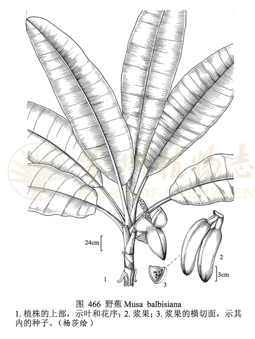 用途:假茎可作猪饲料。本种是栽培作水果的蕉类的亲本之一。