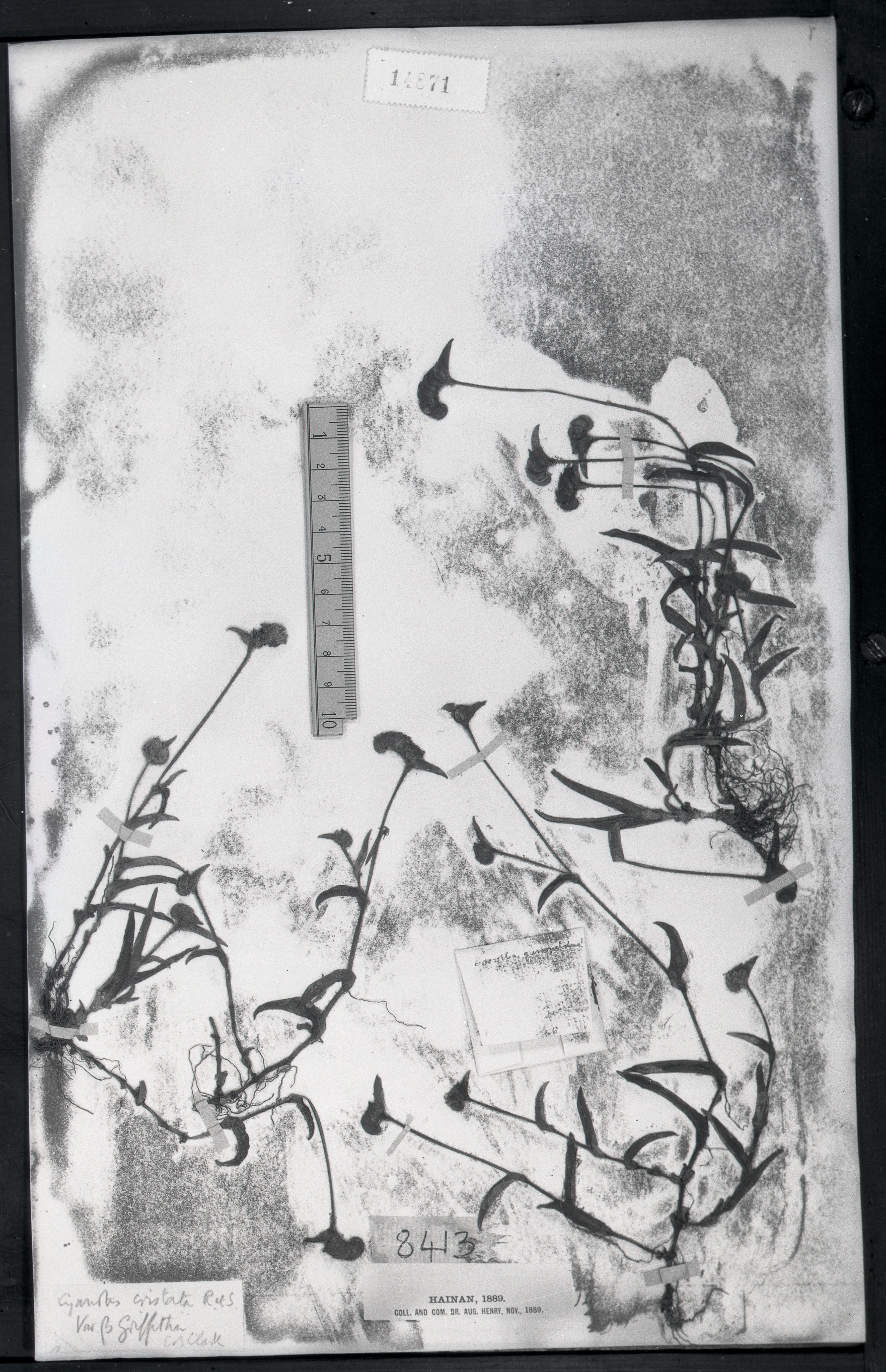 | 照片编号 | 14871 | | 学名 | Cyanotis cristata R. et S. var. griffithii Clarke | | 中文名 | | | 科名 | 鸭跖草科 Commelinaceae | | 属名 | 蓝耳草属 | | 保存馆 | KEW | | 标本号 | 14871 | | 采集人 | | | 采集号 | | | 采集省份 | | | 采集地 | | | 采集日期 | | | 备注 | |