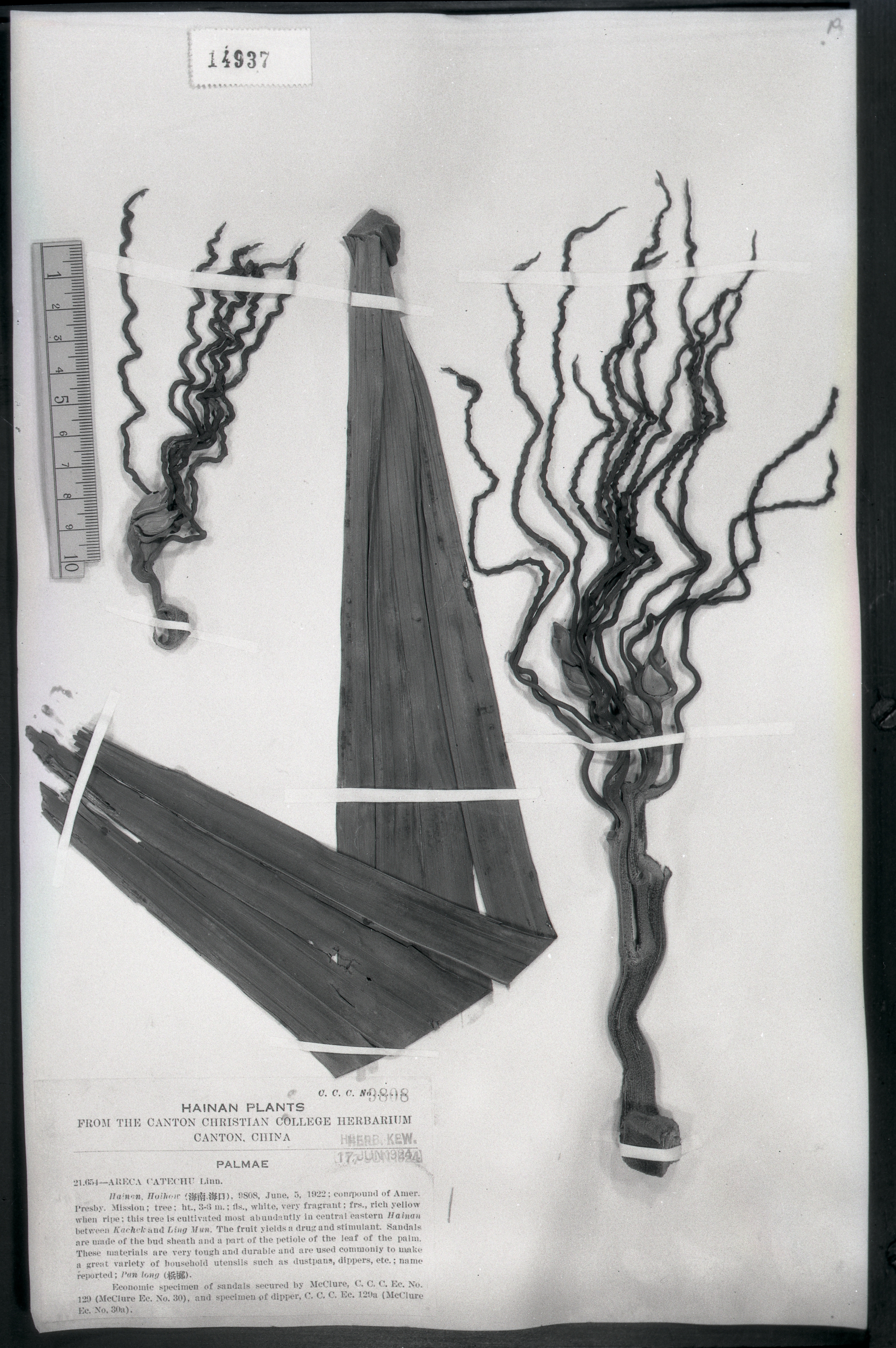 秦仁昌拍摄模式植物标本照片信息 (棕榈科,槟榔属)