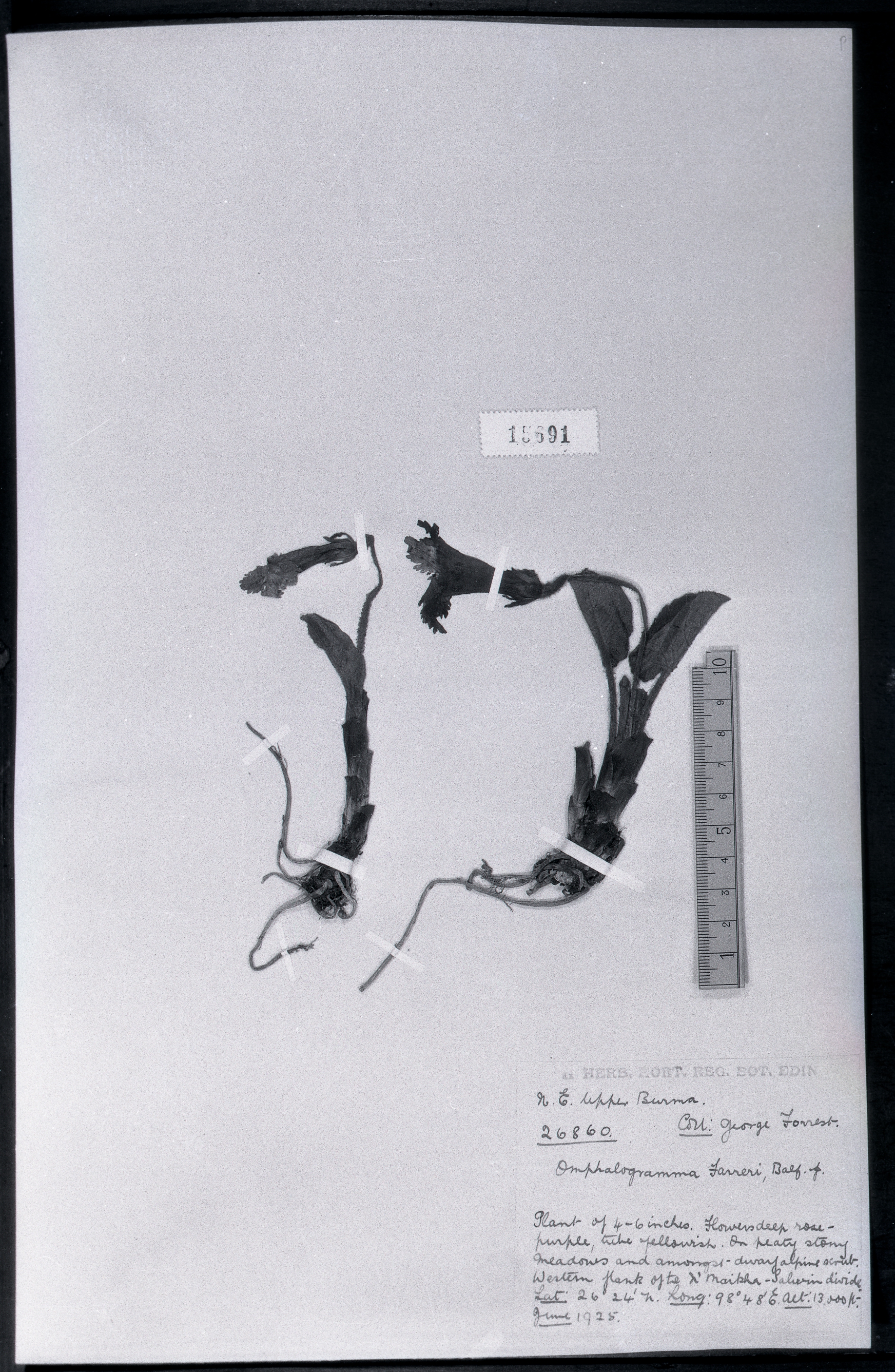 秦仁昌拍摄模式植物标本照片信息 (报春花科,报春花属)