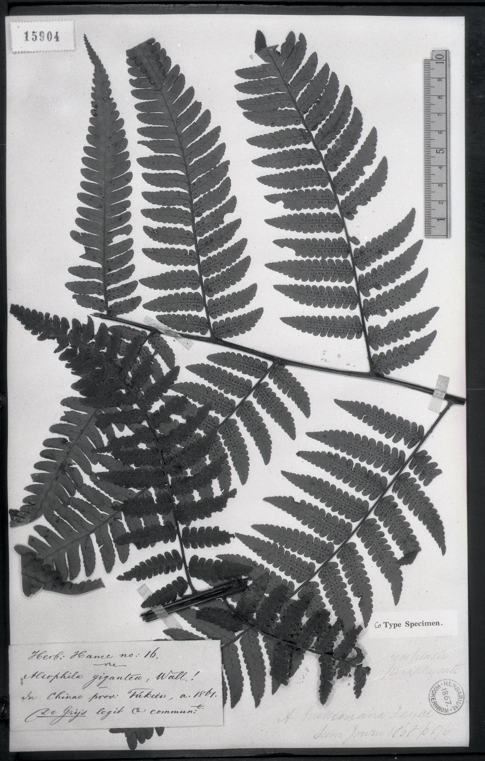 | 照片编号 | 15904 | | 学名 | Gymnosphaera metteniana(Hce.)Ching (Alsophila metteniana Hce.) | | 中文名 | | | 科名 | 桫椤科 Cyatheaceae | | 属名 | 黑桫椤属 | | 保存馆 | KEW | | 标本号 | 15904 | | 采集人 | | | 采集号 | | | 采集省份 | | | 采集地 | | | 采集日期 | | | 备注 | |