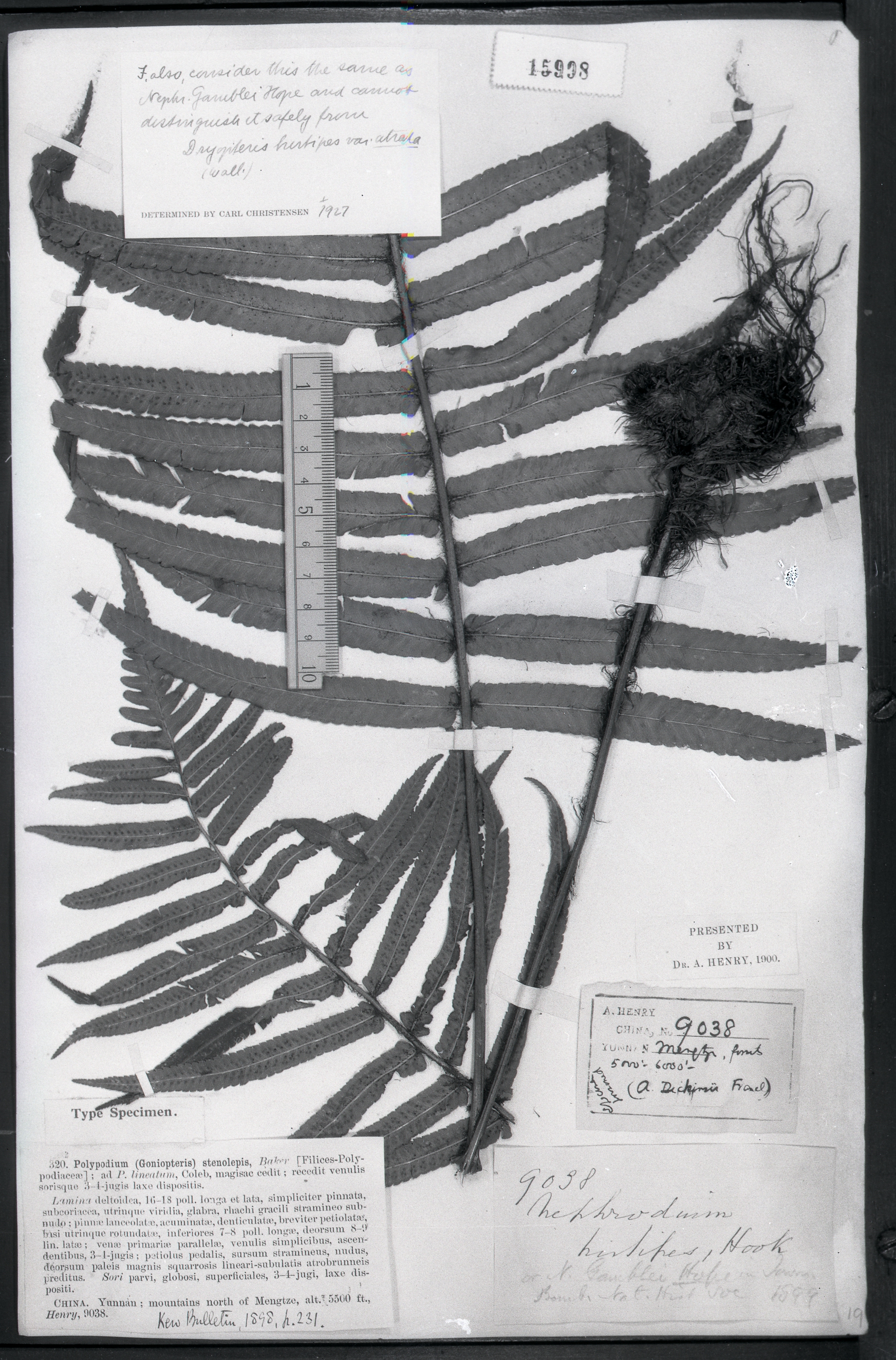 秦仁昌拍摄模式植物标本照片信息 (鳞毛蕨科,鳞毛蕨属)