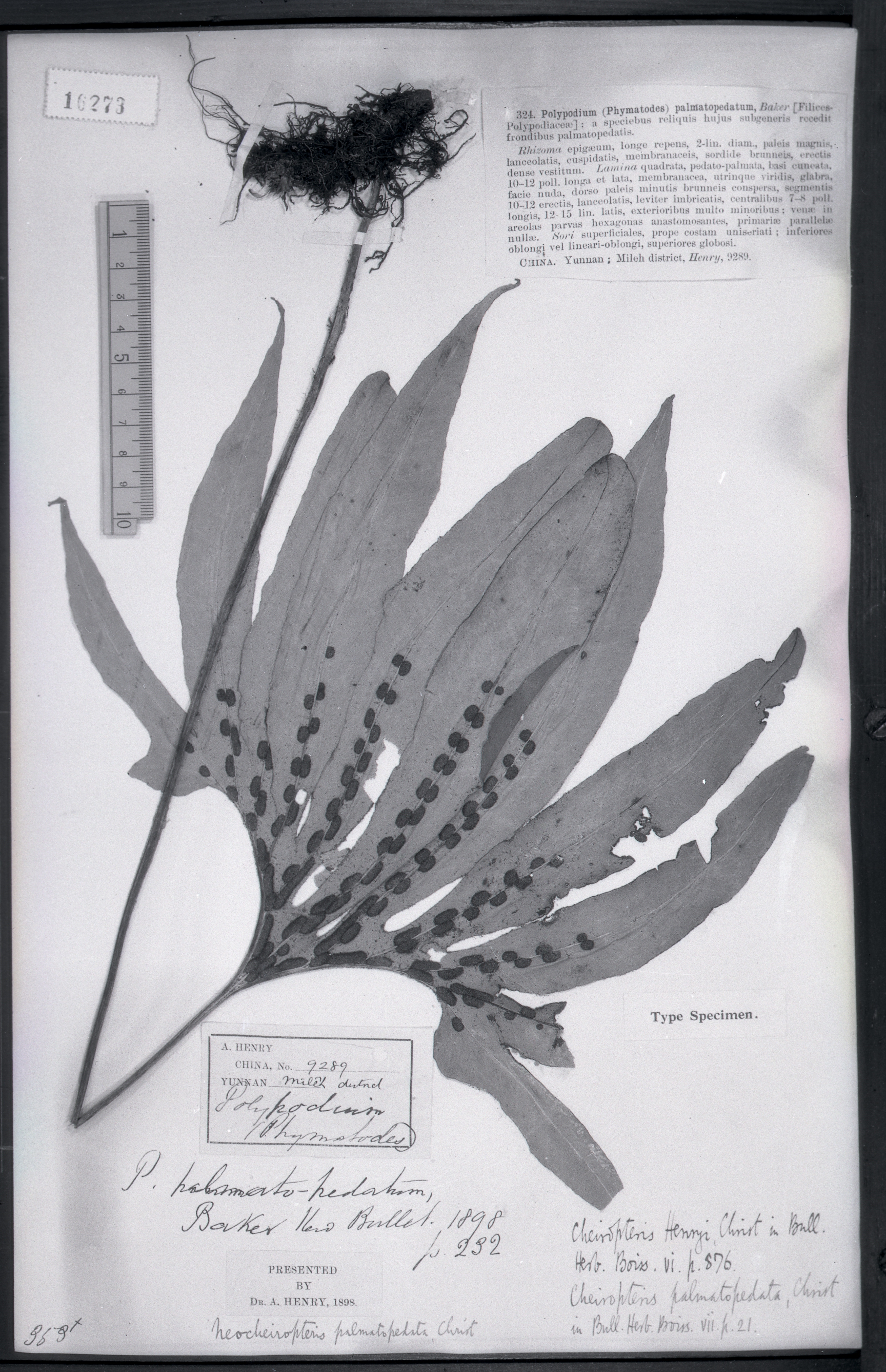 学名 Neocheiropteris palmatopedata Christ