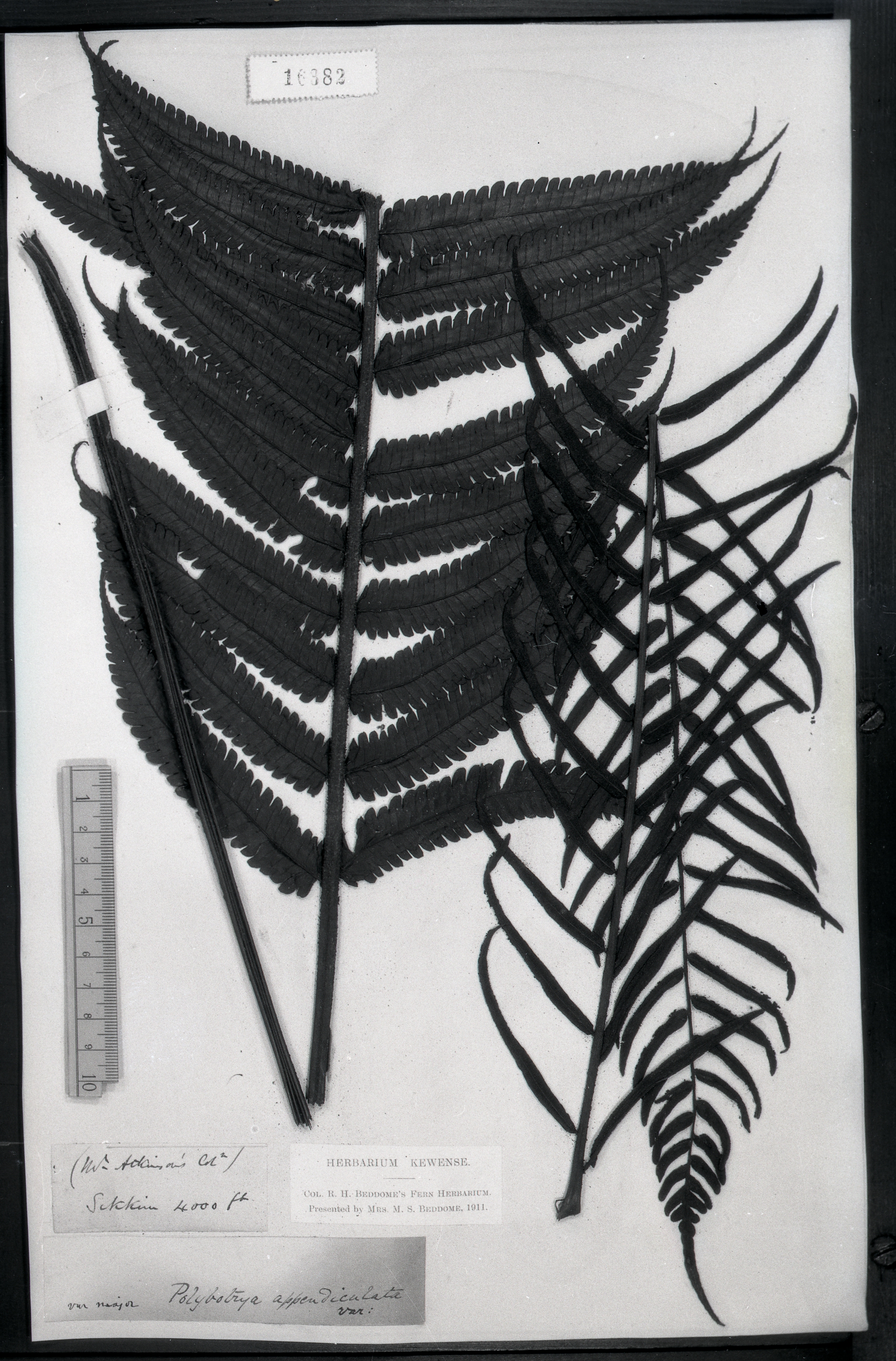 | 照片编号 | 16382 | | 学名 | Egenolfia appendiculata var.major (Polybotrya appendiculata var.major ) | | 中文名 | | | 科名 | 实蕨科 Bolbitidaceae | | 属名 | 刺蕨属 | | 保存馆 | KEW | | 标本号 | 16382 | | 采集人 | | | 采集号 | | | 采集省份 | | | 采集地 | | | 采集日期 | | | 备注 | |