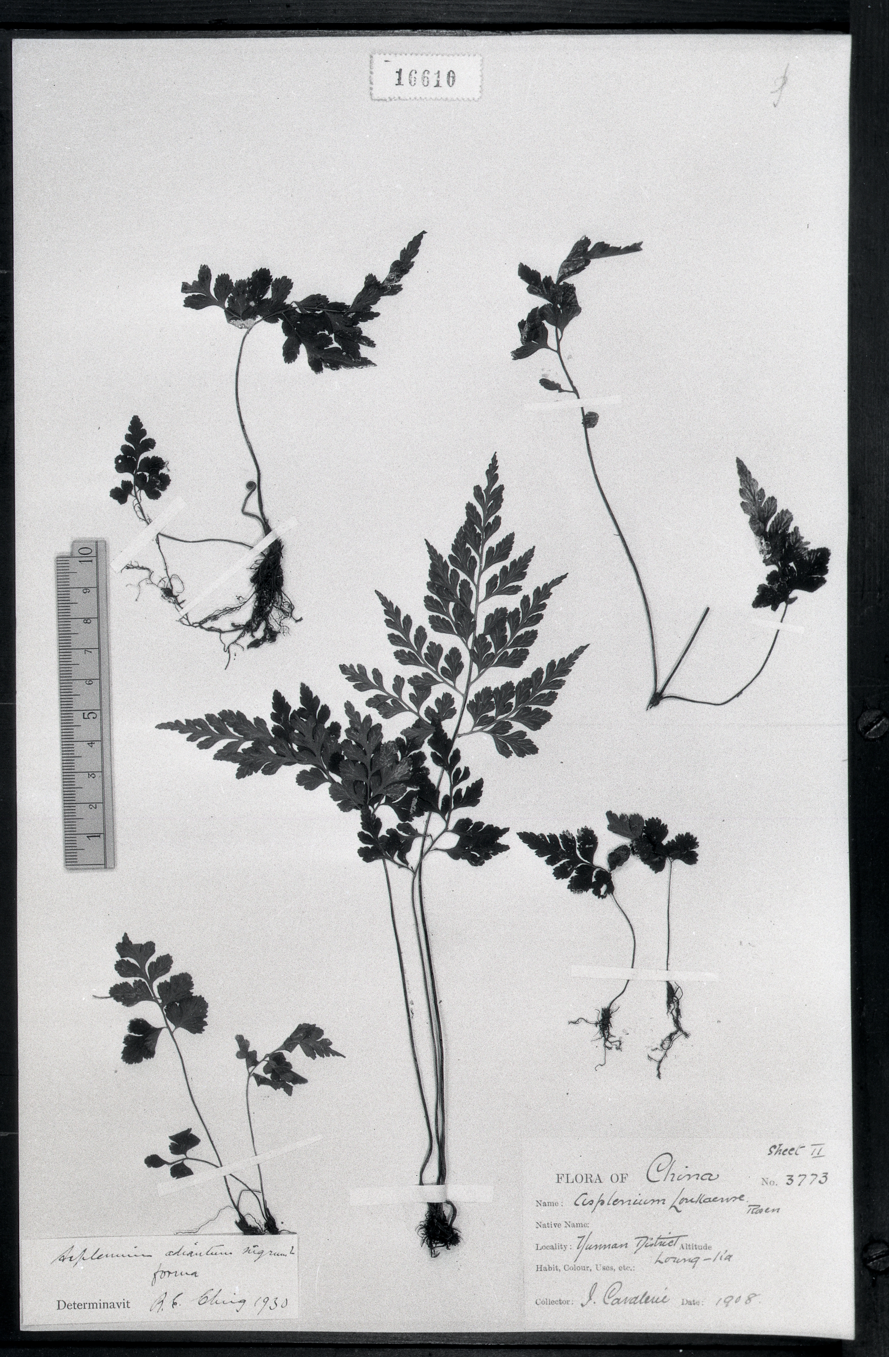 秦仁昌拍摄模式植物标本照片信息 (铁角蕨科,铁角蕨属)