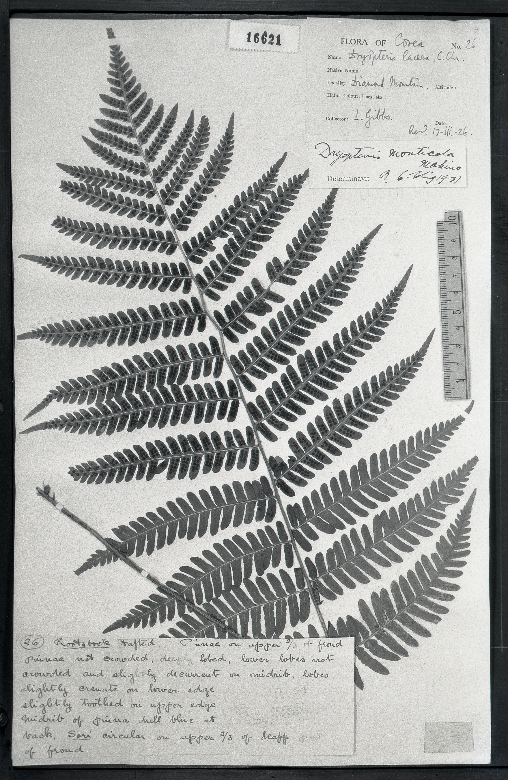 秦仁昌拍摄模式植物标本照片信息 (鳞毛蕨科,鳞毛蕨属)
