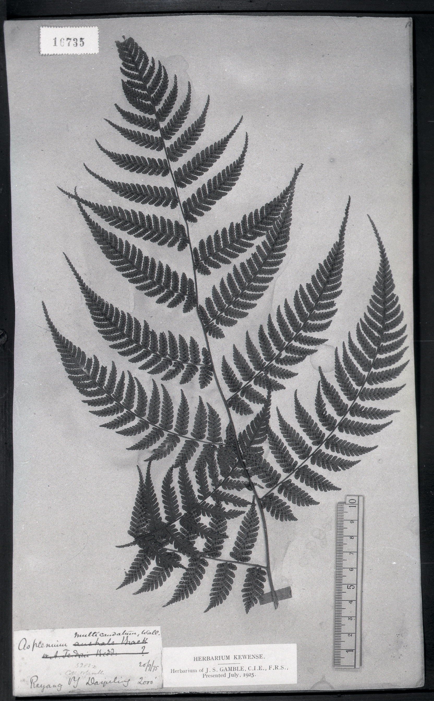 | 照片编号 | 16735 | | 学名 | Diplazium multicaudatum (Wall.)Ching (Athyrium multicaudatum Pr.) | | 中文名 | | | 科名 | 蹄盖蕨科 Athyriaceae | | 属名 | 双盖蕨属 | | 保存馆 | KEW | | 标本号 | 16735 | | 采集人 | | | 采集号 | | | 采集省份 | | | 采集地 | | | 采集日期 | | | 备注 | |