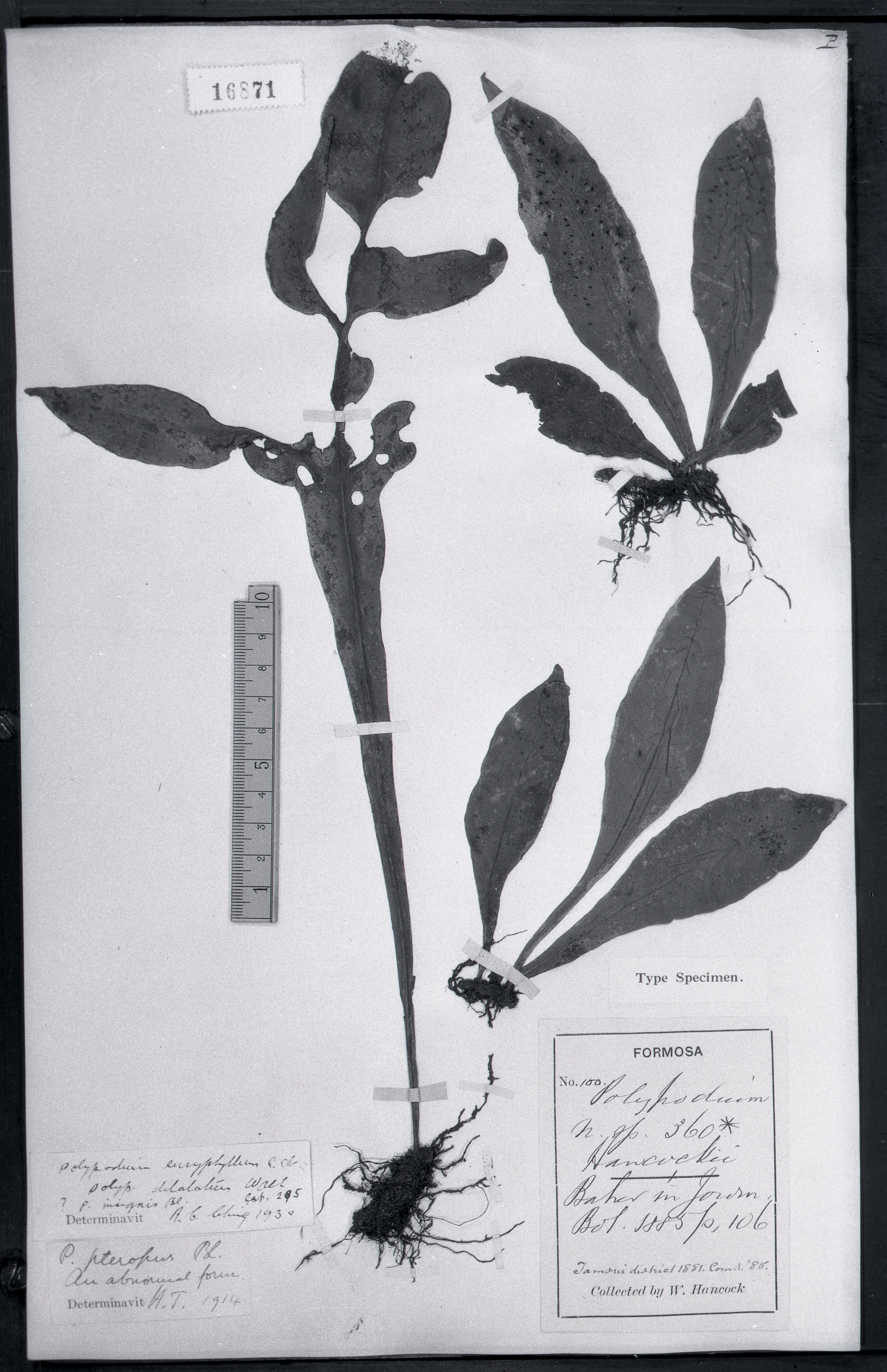 | 照片编号 | 16871 | | 学名 | Microsorium hancockii Ching (Polypodium hancockii Bak.) | | 中文名 | | | 科名 | 水龙骨科 Polypodiaceae | | 属名 | 星蕨属 | | 保存馆 | KEW | | 标本号 | 16871 | | 采集人 | | | 采集号 | | | 采集省份 | | | 采集地 | | | 采集日期 | | | 备注 | |