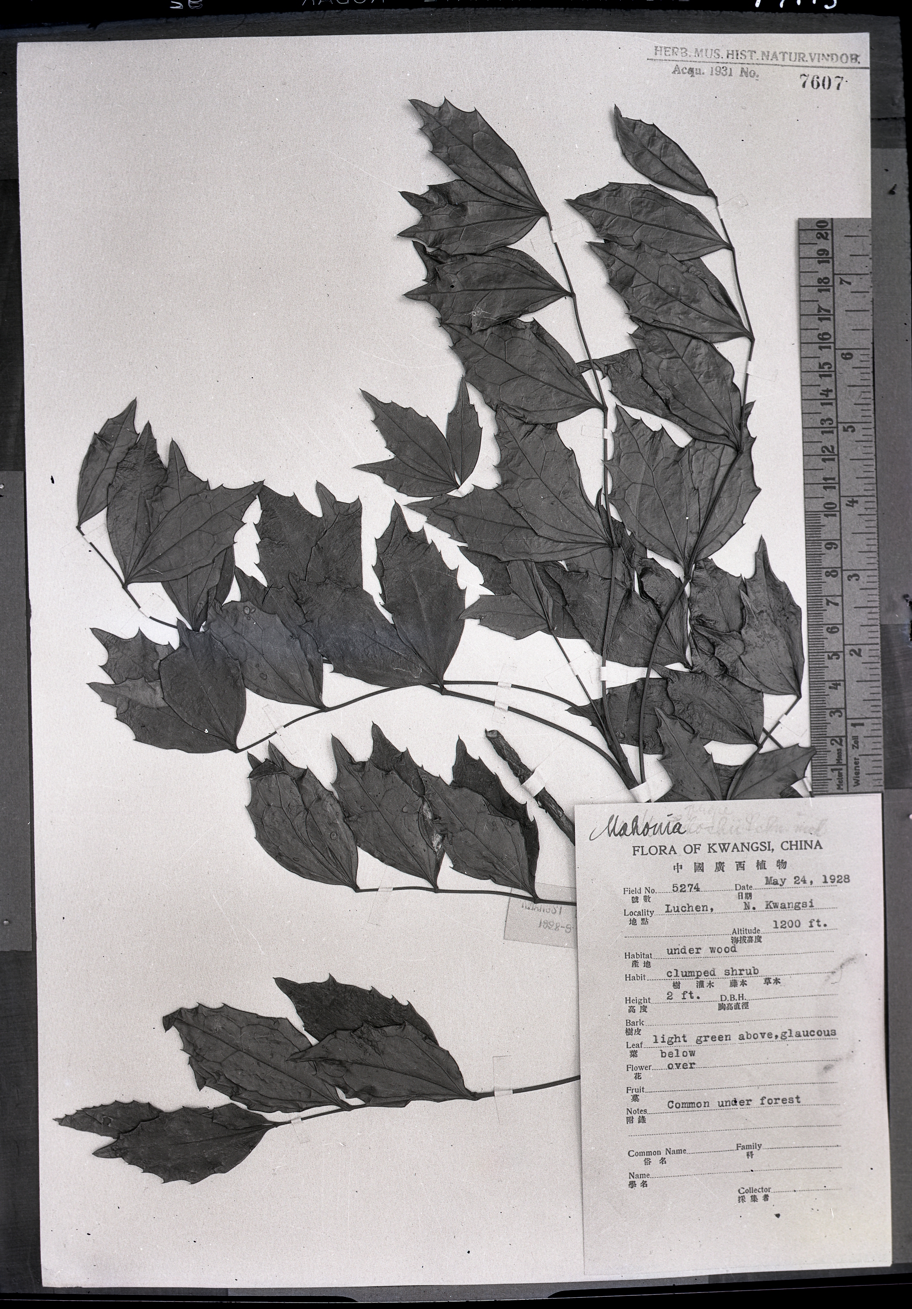 秦仁昌拍摄模式植物标本照片信息 (小檗科,十大功劳属)
