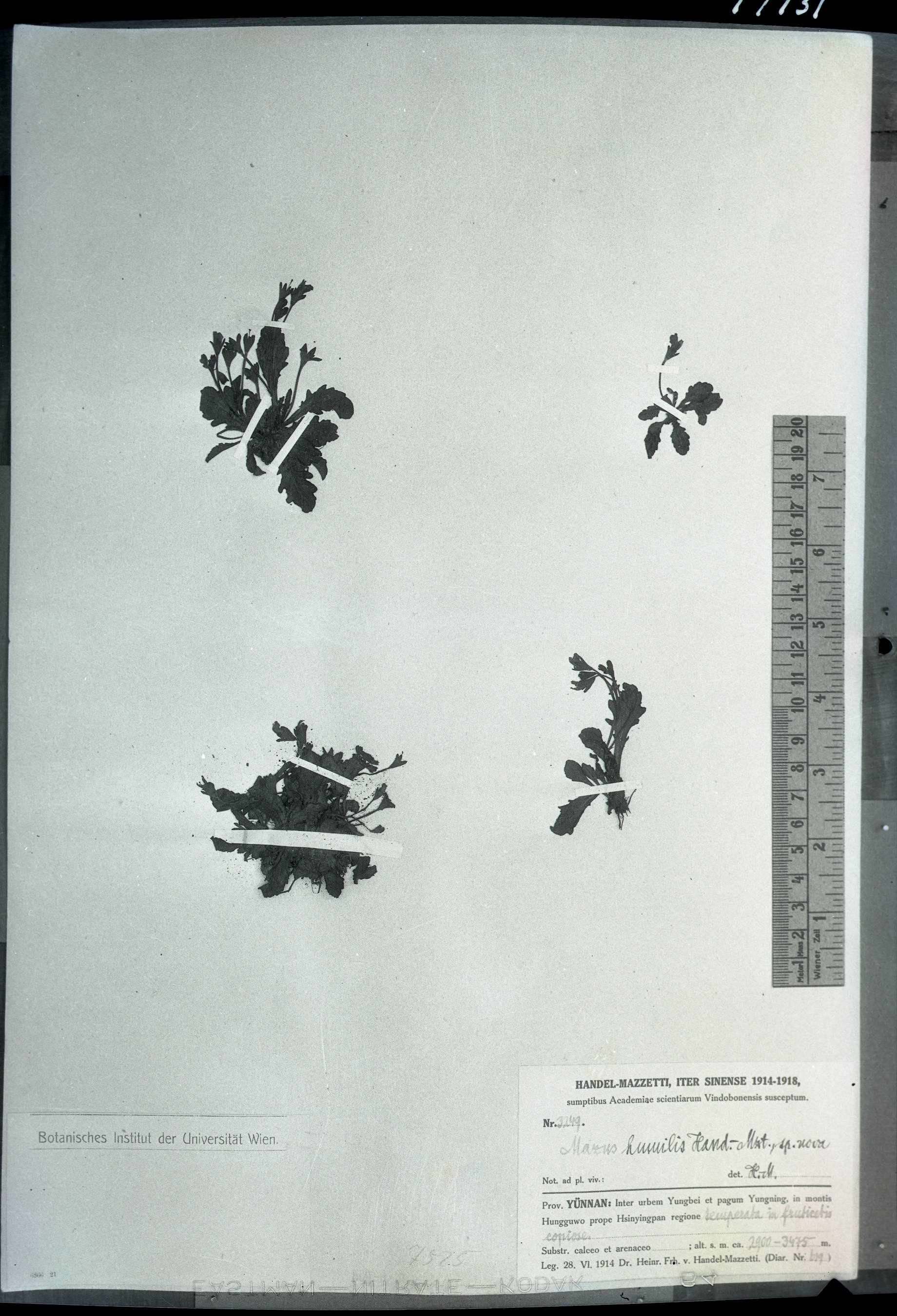 秦仁昌拍摄模式植物标本照片信息 (玄参科,通泉草属)