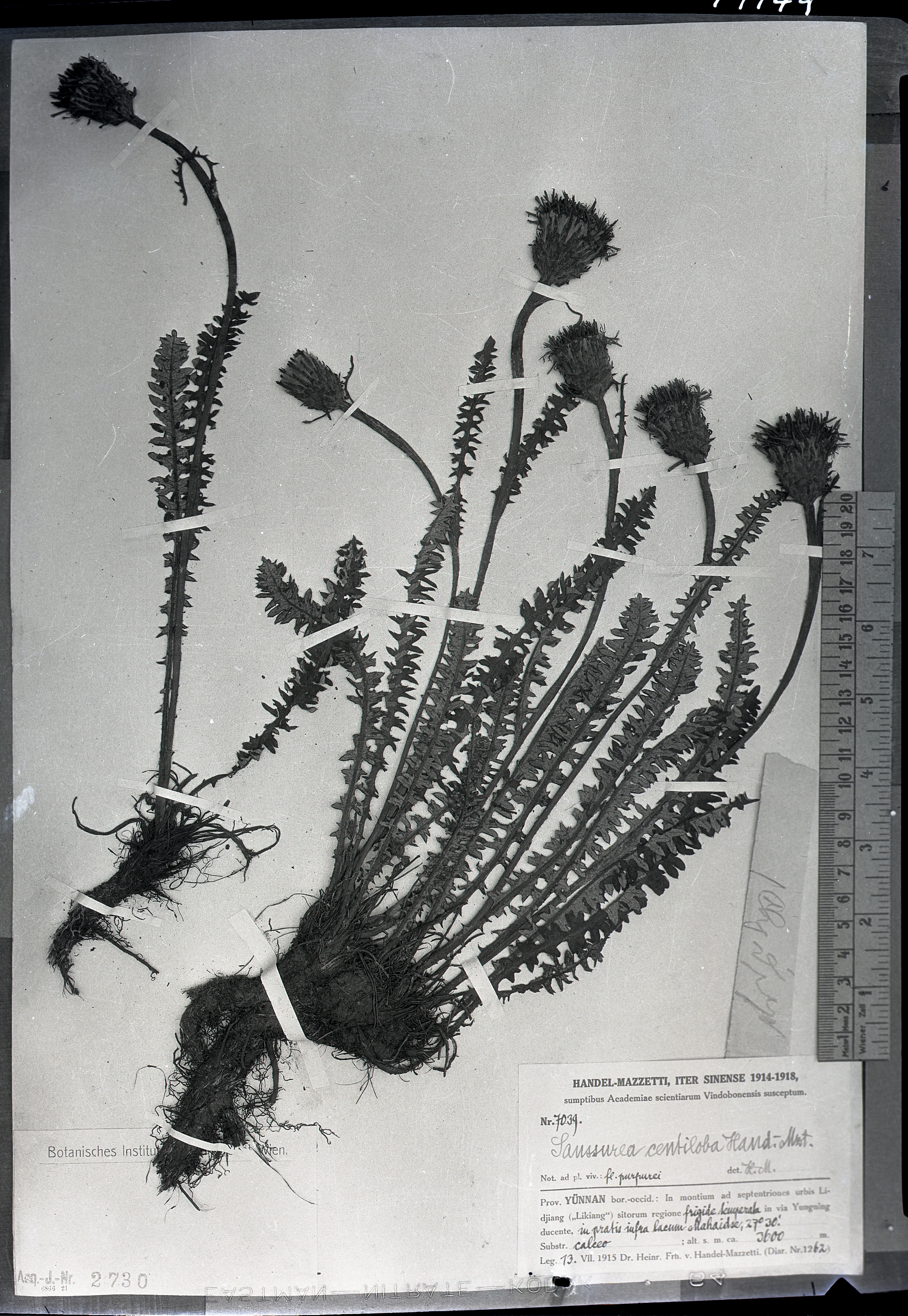 秦仁昌拍摄模式植物标本照片信息 (菊科,风毛菊属)