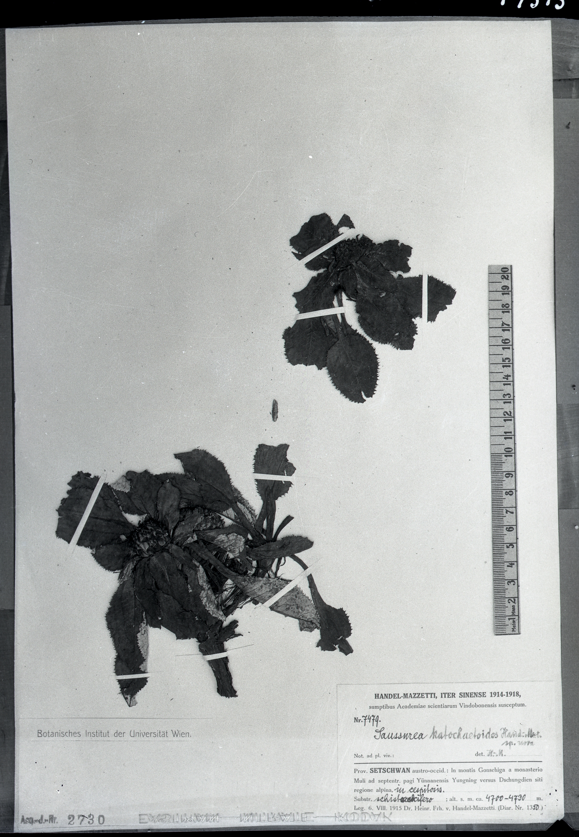 秦仁昌拍摄模式植物标本照片信息 (菊科,风毛菊属)