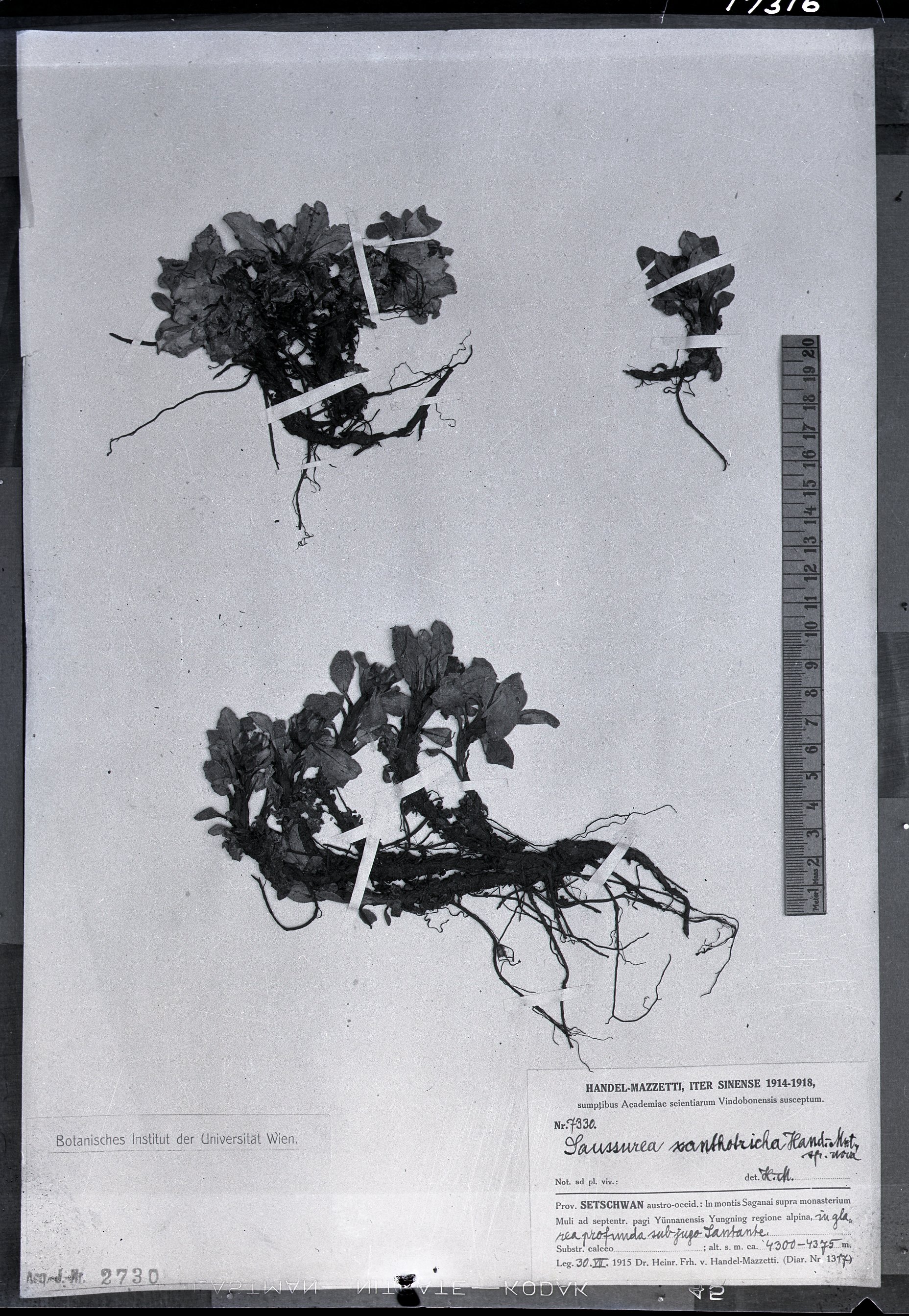 秦仁昌拍摄模式植物标本照片信息 (菊科,风毛菊属)