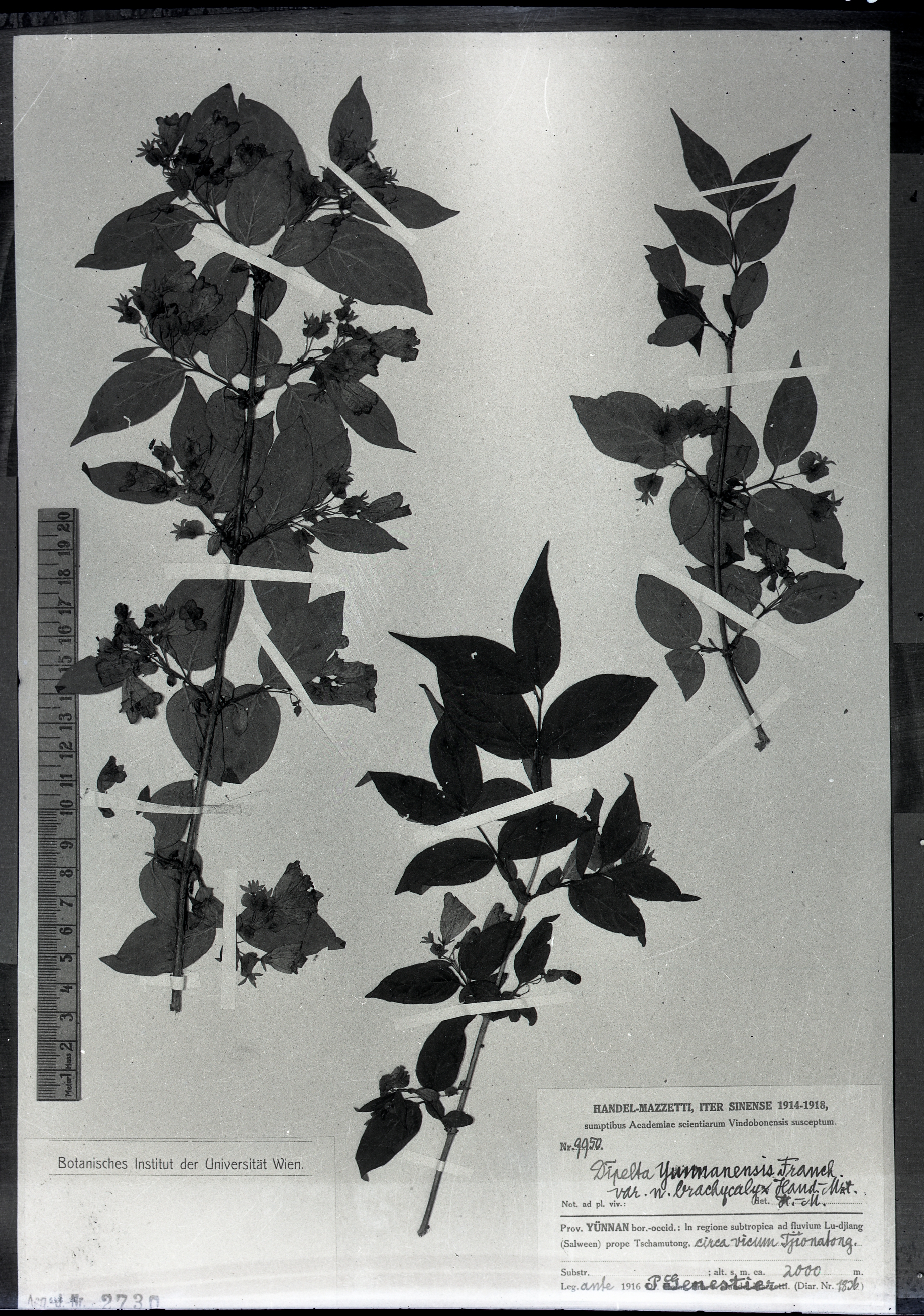 | 照片编号 | 17358 | | 学名 | Dipelta yunnanensis Fr. var. n. brachycalyx Hand.-Mzt. | | 中文名 | | | 科名 | 忍冬科 Caprifoliaceae | | 属名 | 双盾木属 | | 保存馆 | KEW | | 标本号 | 17358 | | 采集人 | | | 采集号 | | | 采集省份 | | | 采集地 | | | 采集日期 | | | 备注 | |