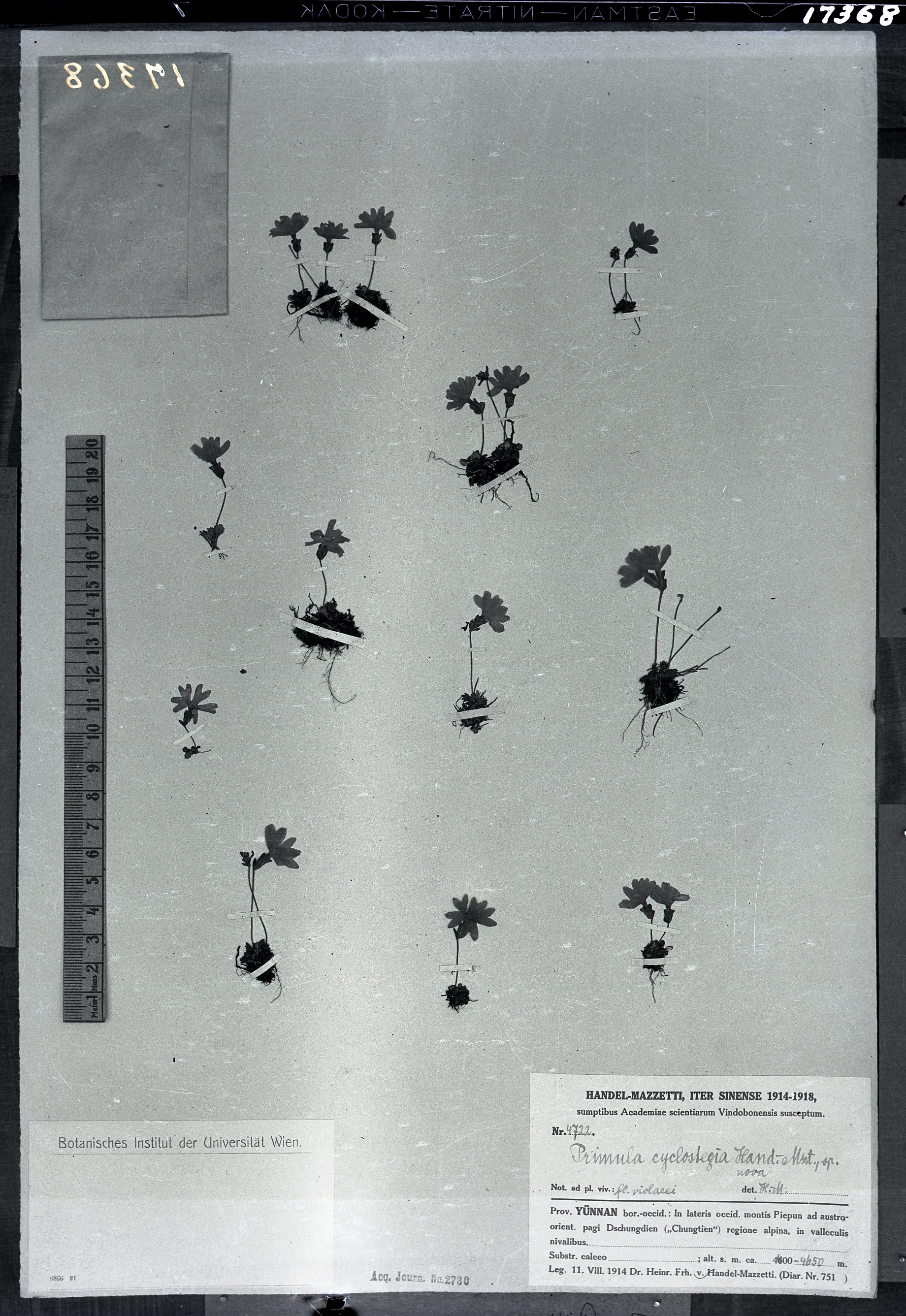 秦仁昌拍摄模式植物标本照片信息 (报春花科,报春花属)