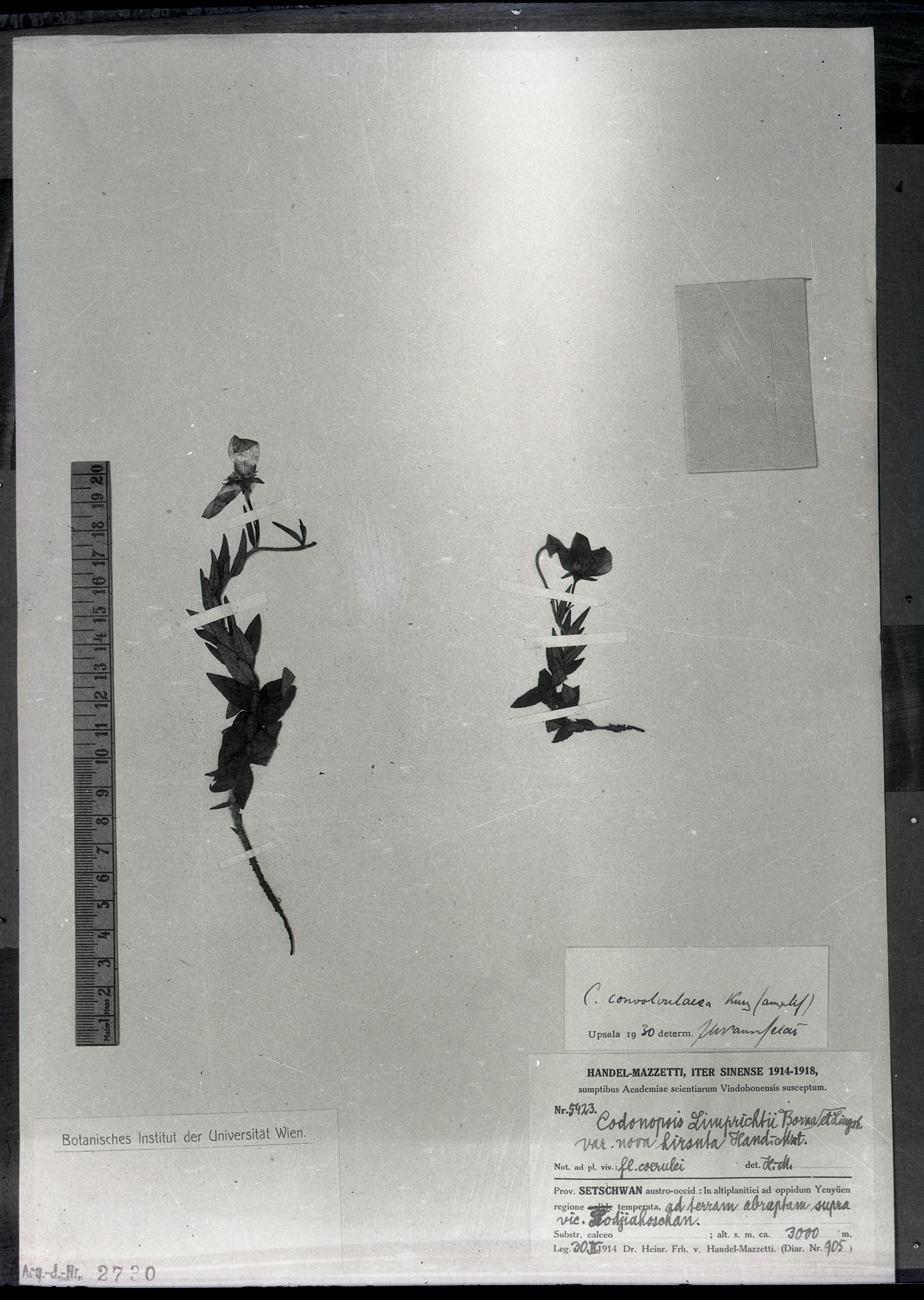 | 照片编号 | 17379 | | 学名 | Codonopsis limprichtii Borxa. var.n.hirsuta Hand.-Mzt. | | 中文名 | | | 科名 | 桔梗科 Campanulaceae | | 属名 | 党参属 | | 保存馆 | KEW | | 标本号 | 17379 | | 采集人 | | | 采集号 | | | 采集省份 | | | 采集地 | | | 采集日期 | | | 备注 | |