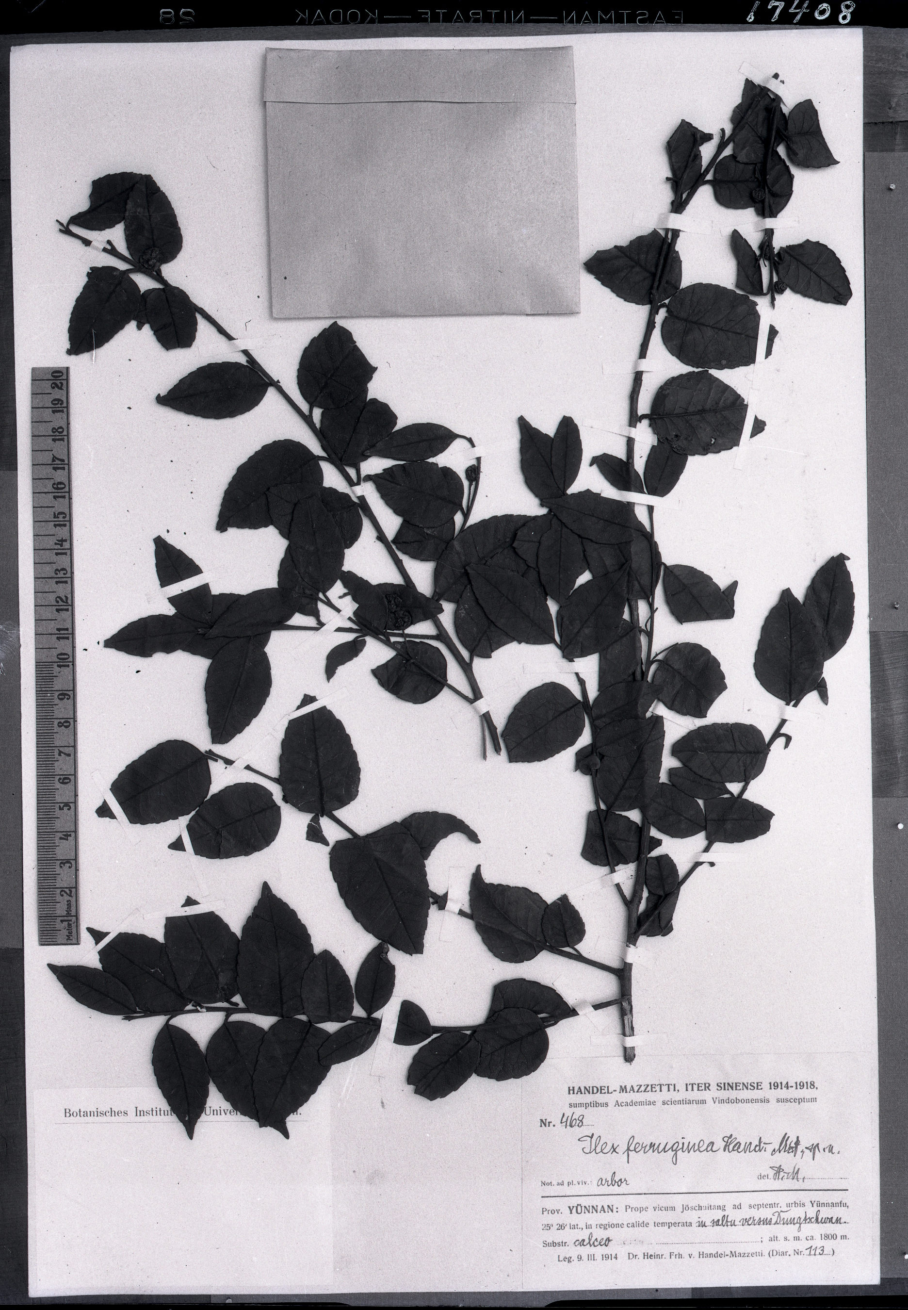 秦仁昌拍摄模式植物标本照片信息 (冬青科,冬青属)