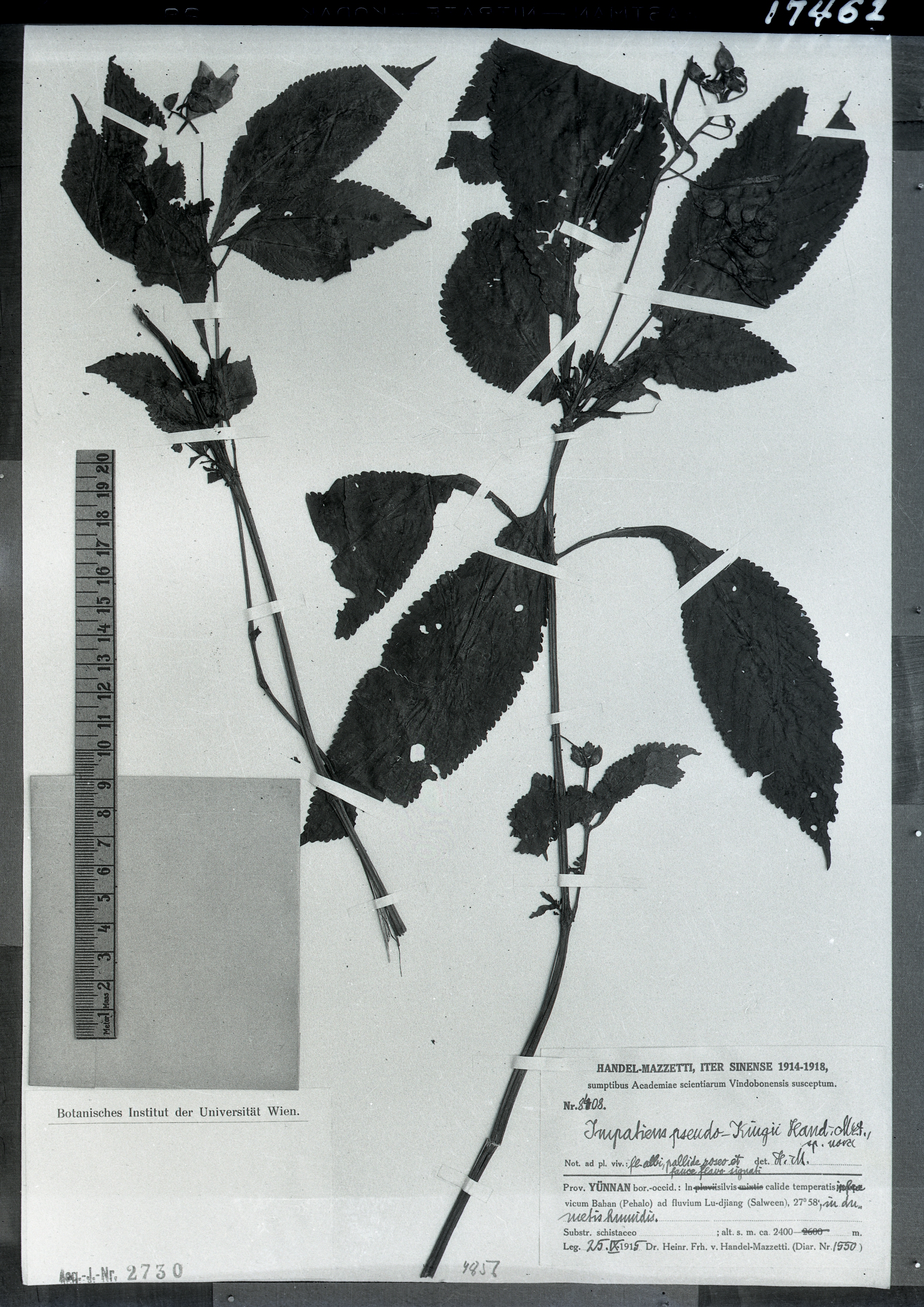 秦仁昌拍摄模式植物标本照片信息 (凤仙花科,凤仙花属)