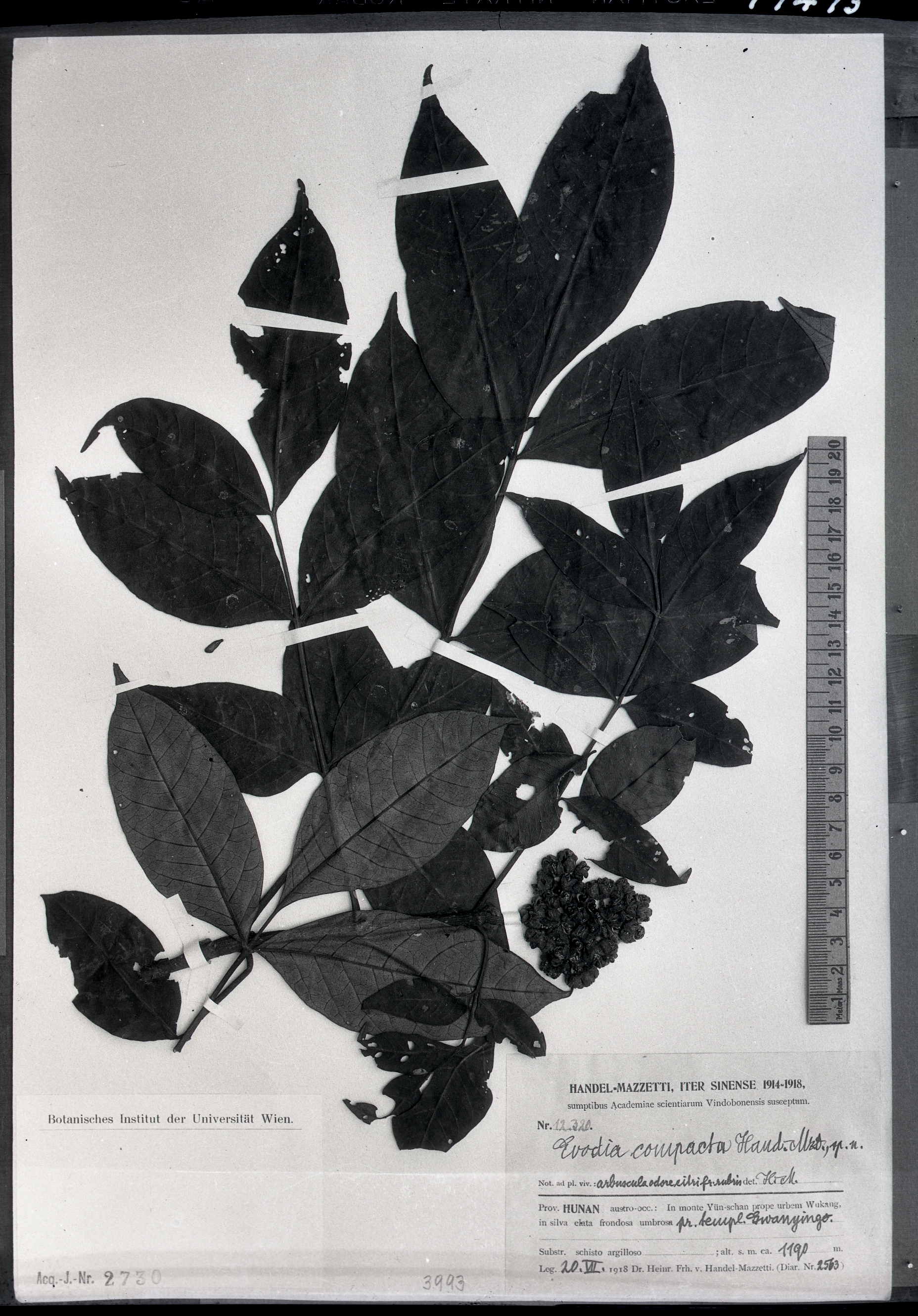 秦仁昌拍摄模式植物标本照片信息 (芸香科,吴茱萸属)