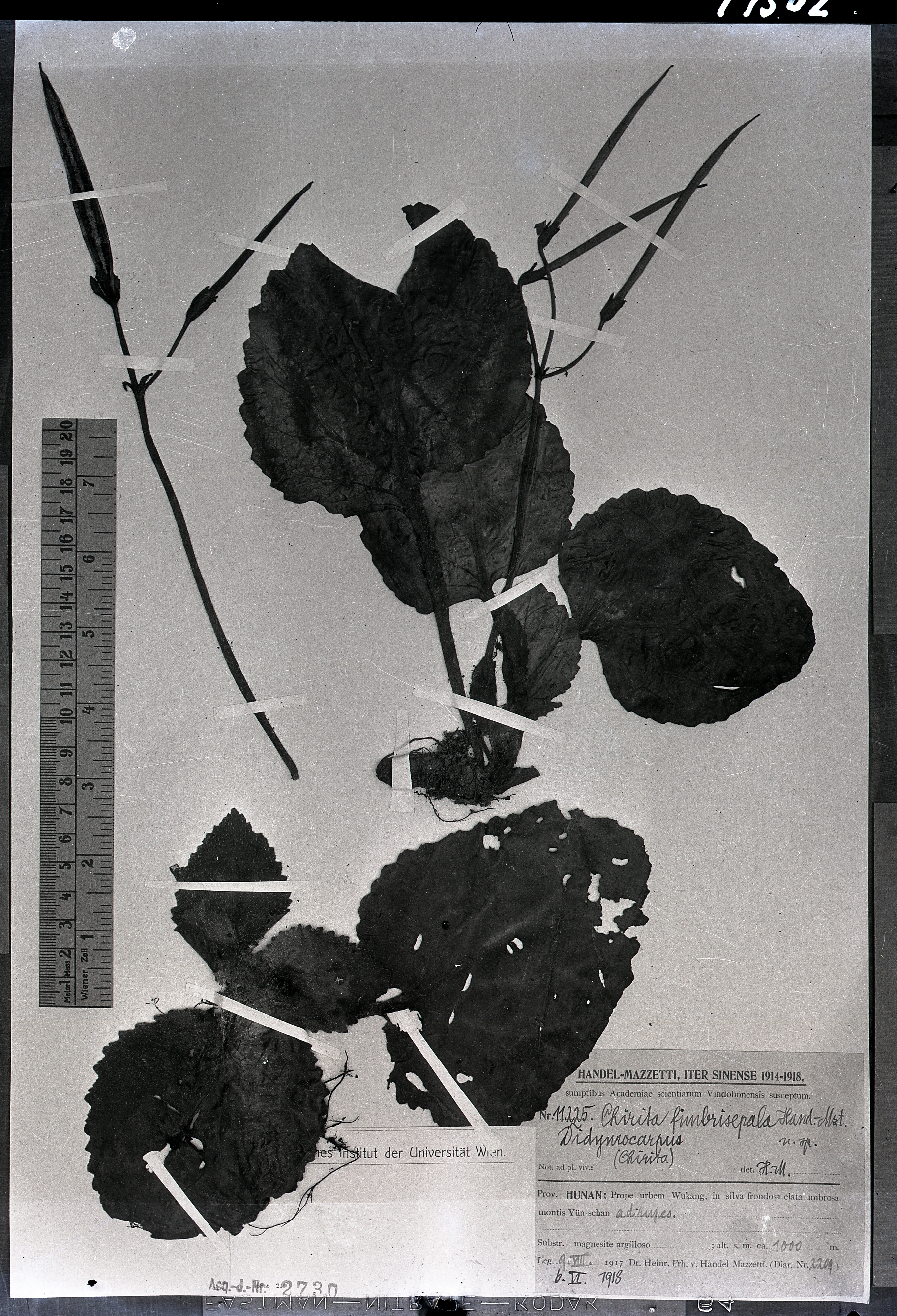 秦仁昌拍摄模式植物标本照片信息 (苦苣苔科,唇柱苣苔属)