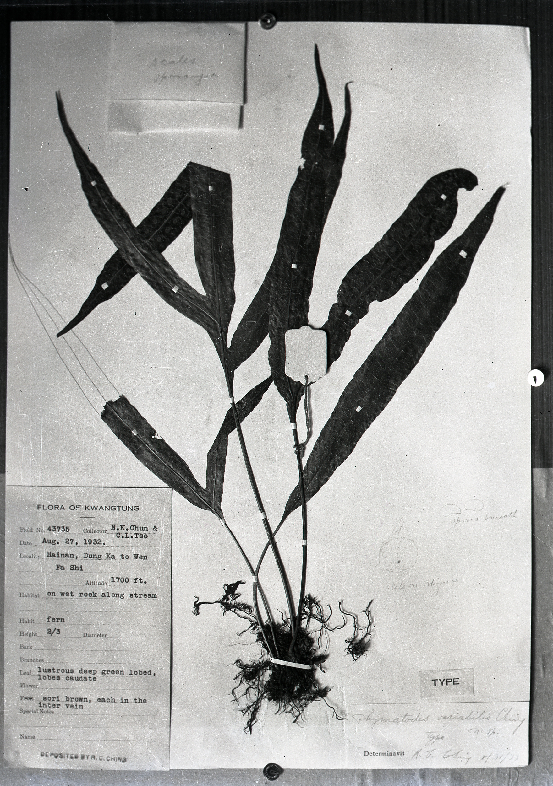 秦仁昌拍摄模式植物标本照片信息 (水龙骨科,密网蕨属)