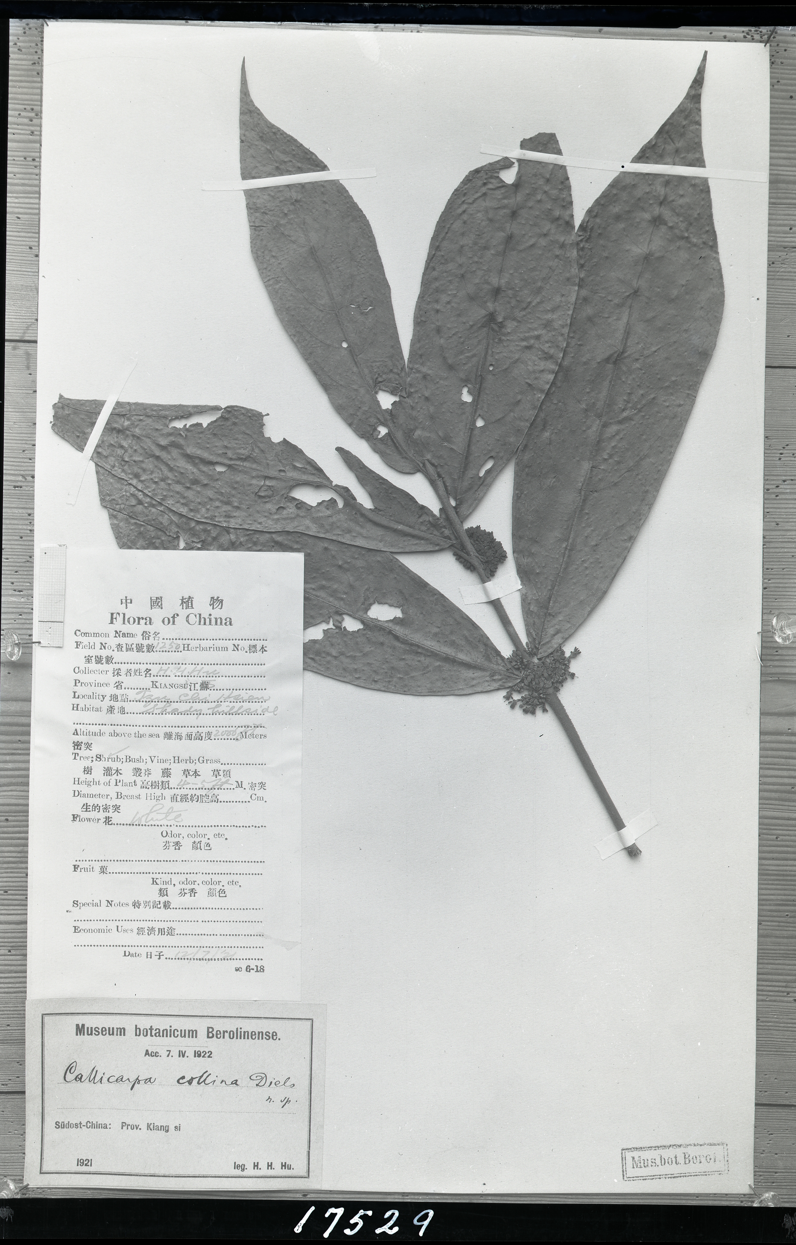 秦仁昌拍摄模式植物标本照片信息 (马鞭草科,紫珠属)