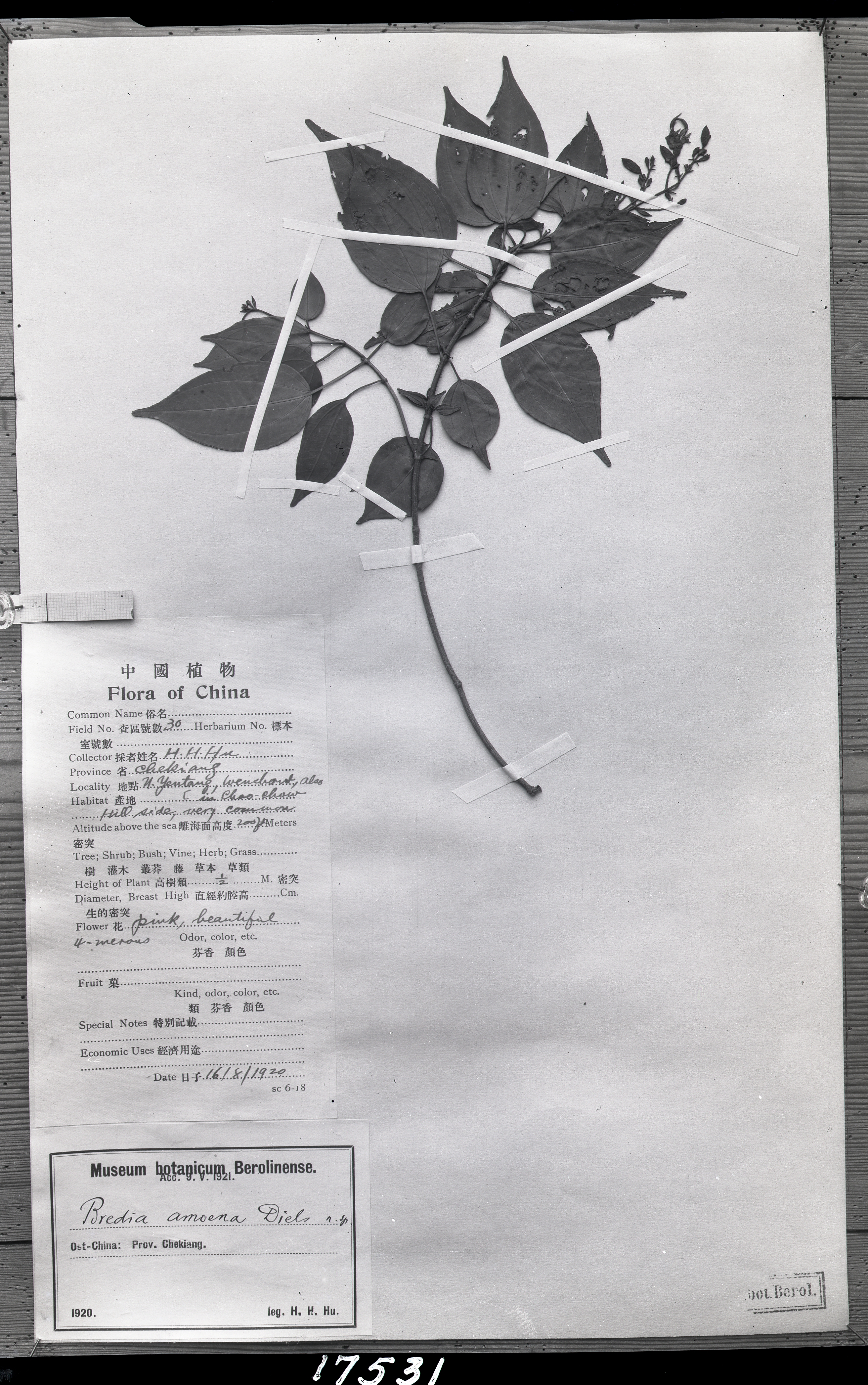 秦仁昌拍摄模式植物标本照片信息 (野牡丹科,野海棠属)