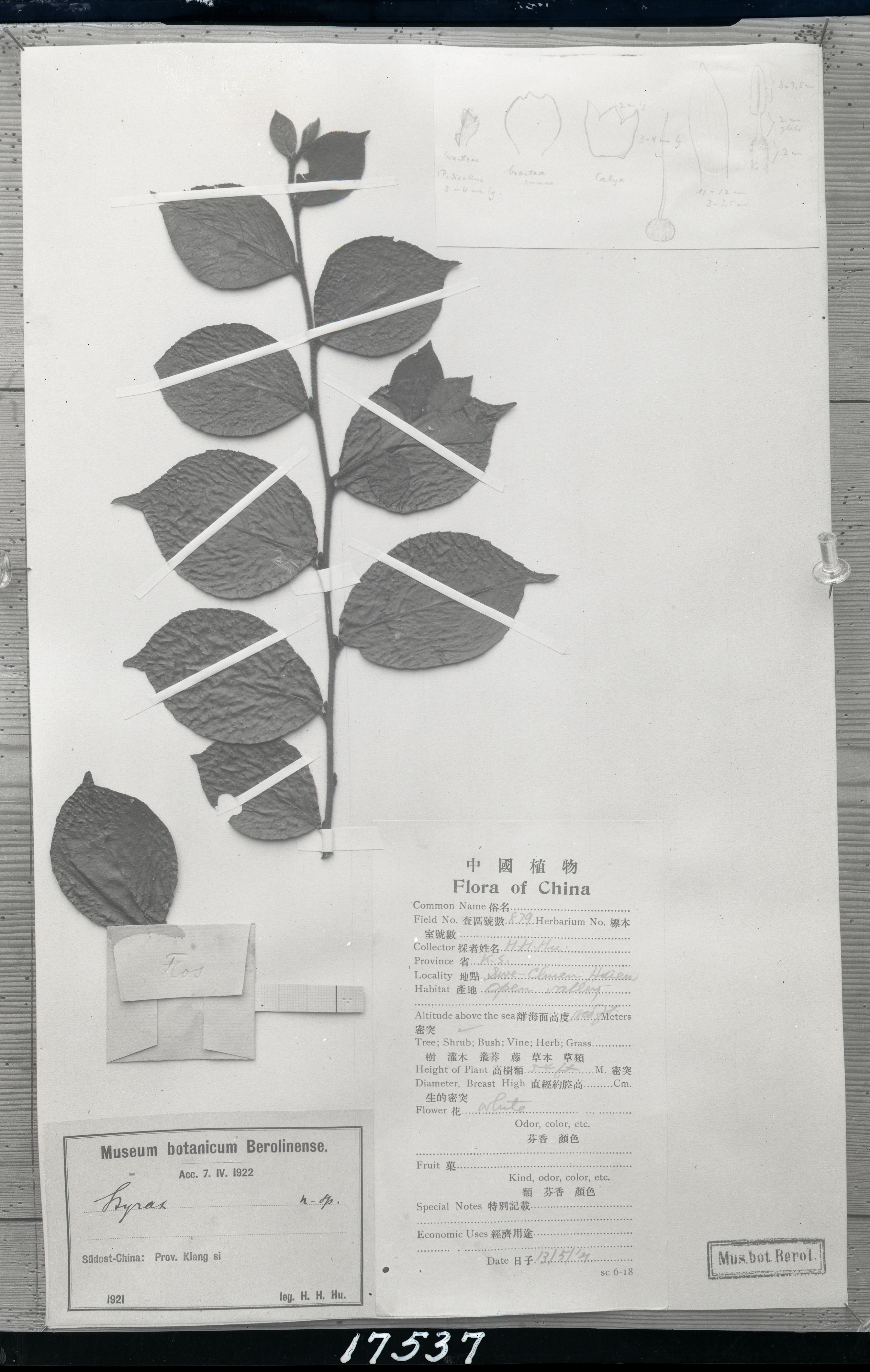 秦仁昌拍摄模式植物标本照片信息 (安息香科,)