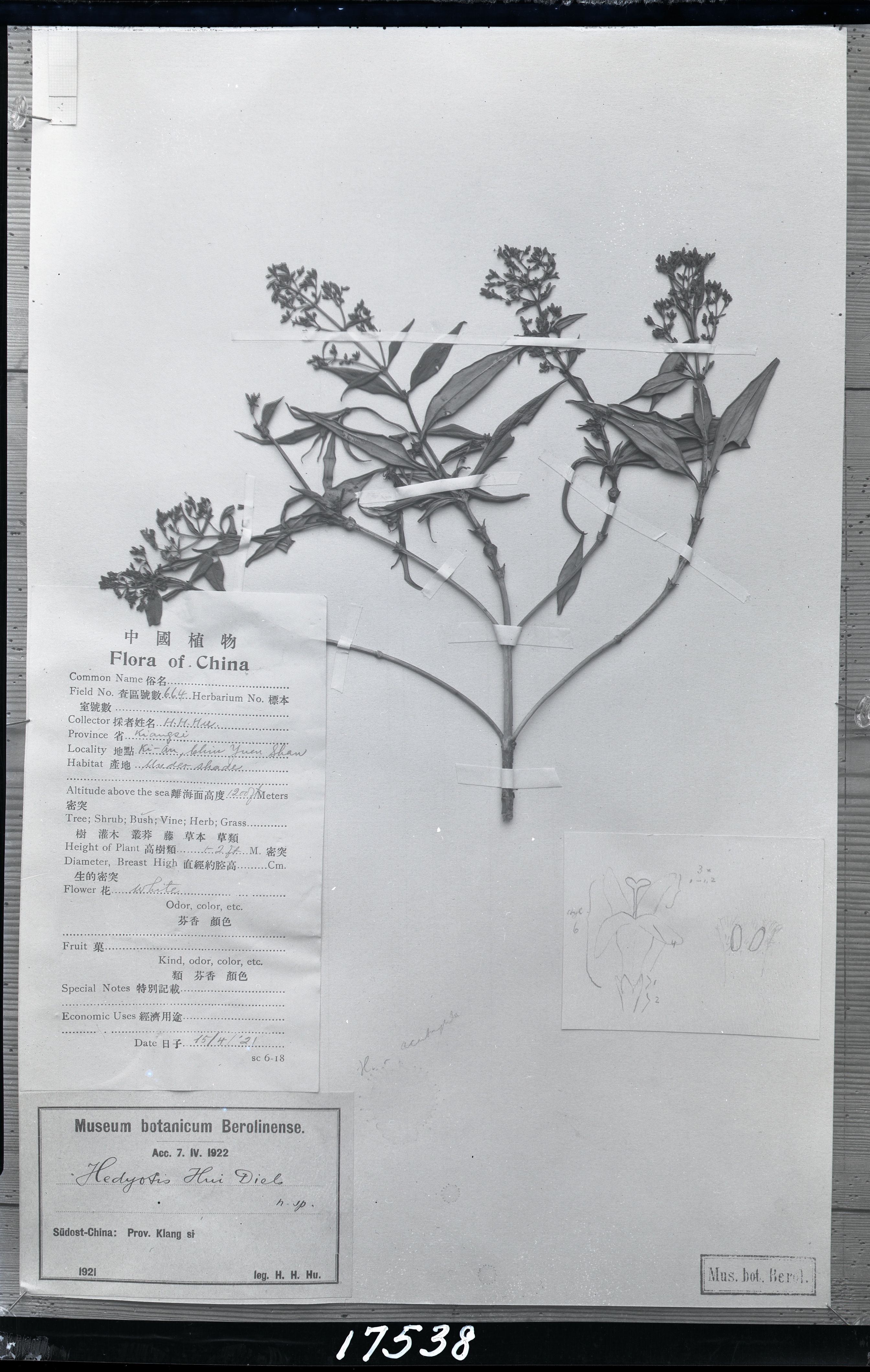 秦仁昌拍摄模式植物标本照片信息 (茜草科,)