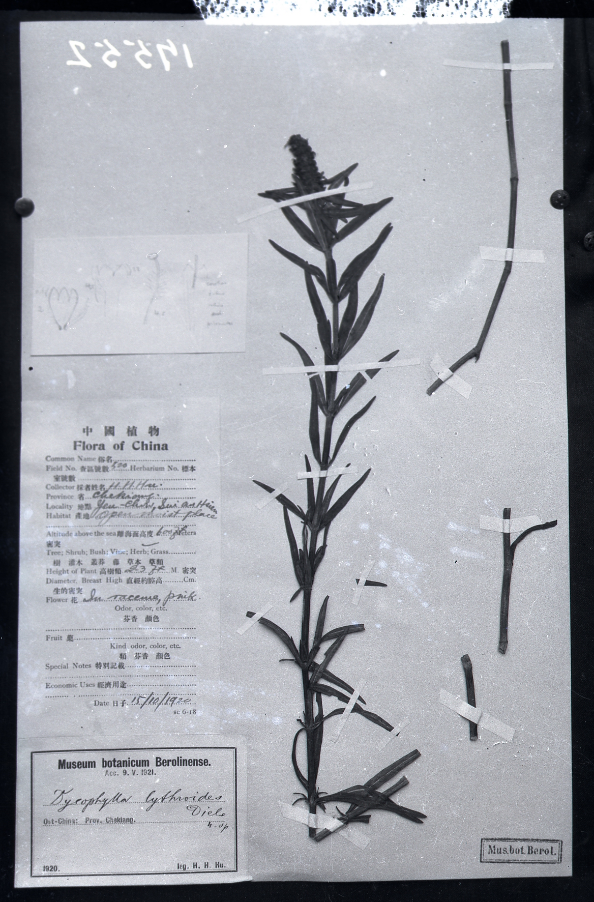 秦仁昌拍摄模式植物标本照片信息 (唇形科,水蜡烛属)