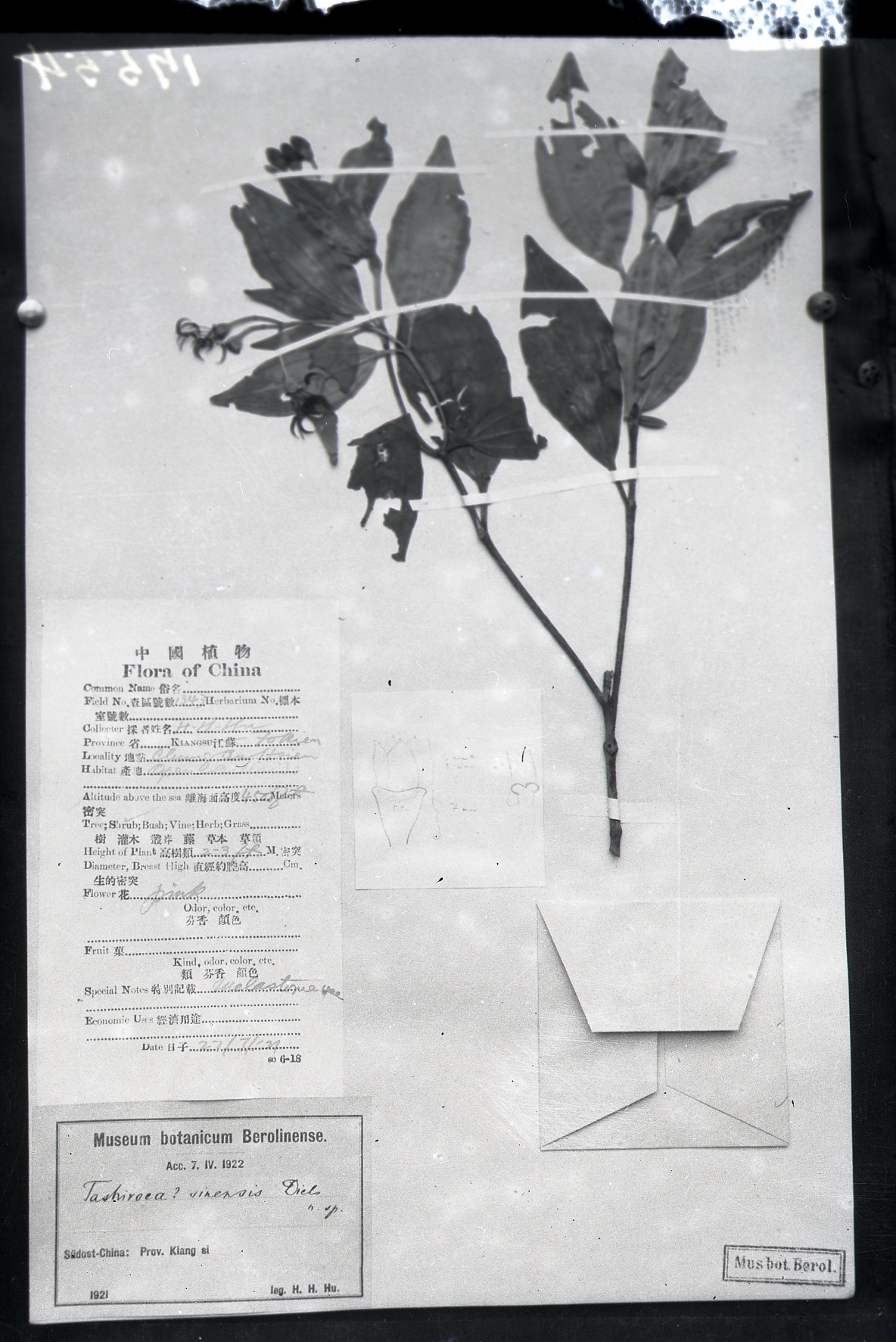 秦仁昌拍摄模式植物标本照片信息 (野牡丹科,野海棠属)