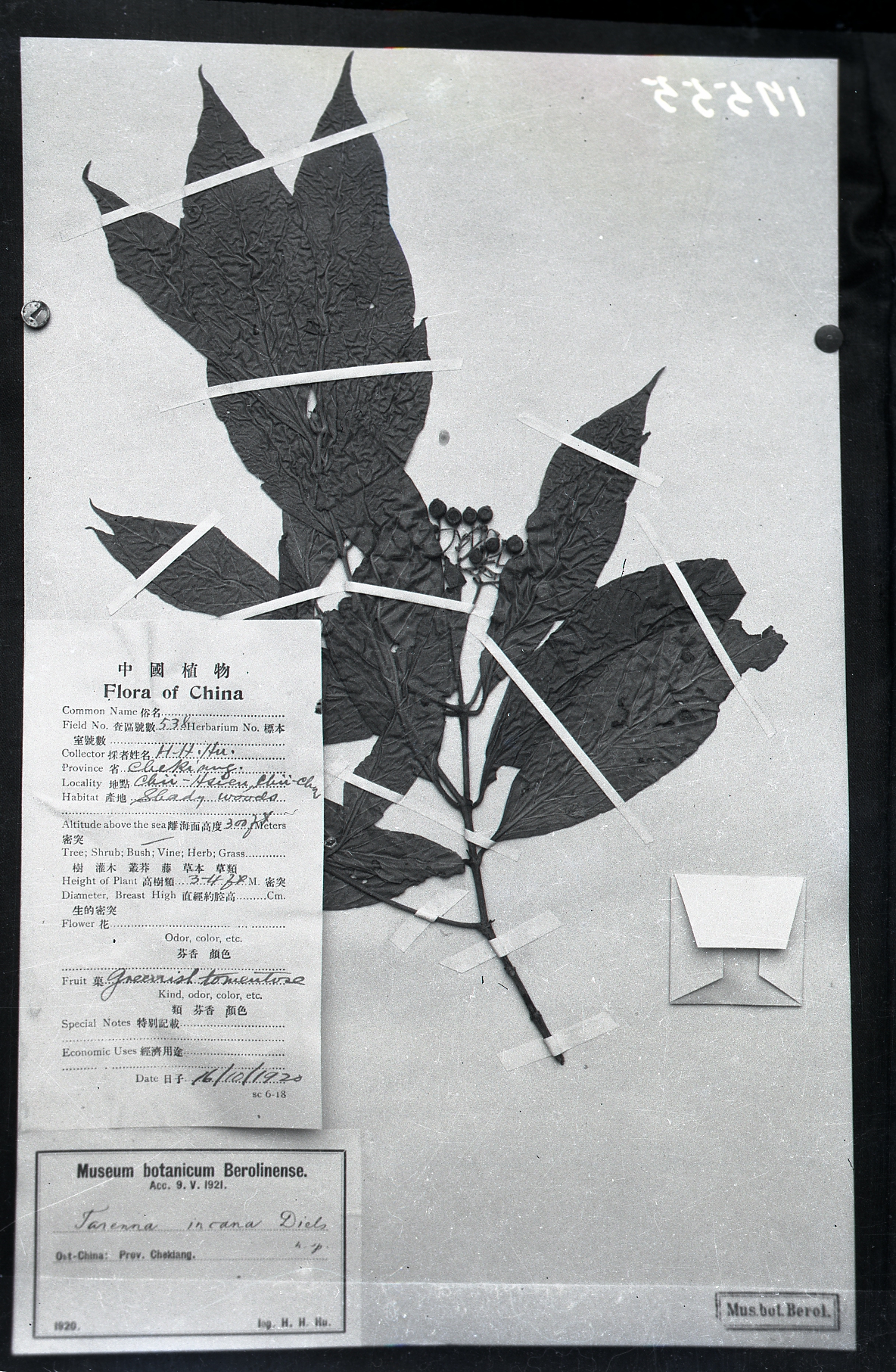 秦仁昌拍摄模式植物标本照片信息 (茜草科,乌口树属)