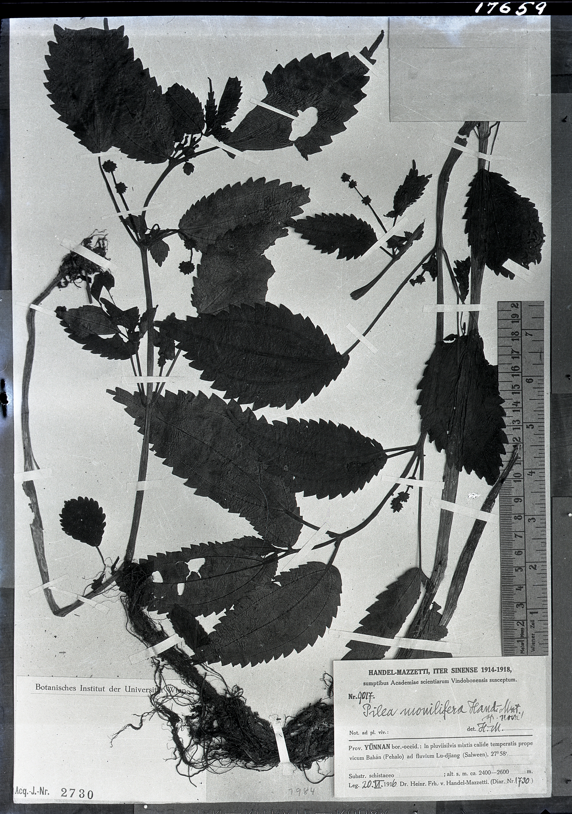 秦仁昌拍摄模式植物标本照片信息 (荨麻科,冷水花属)