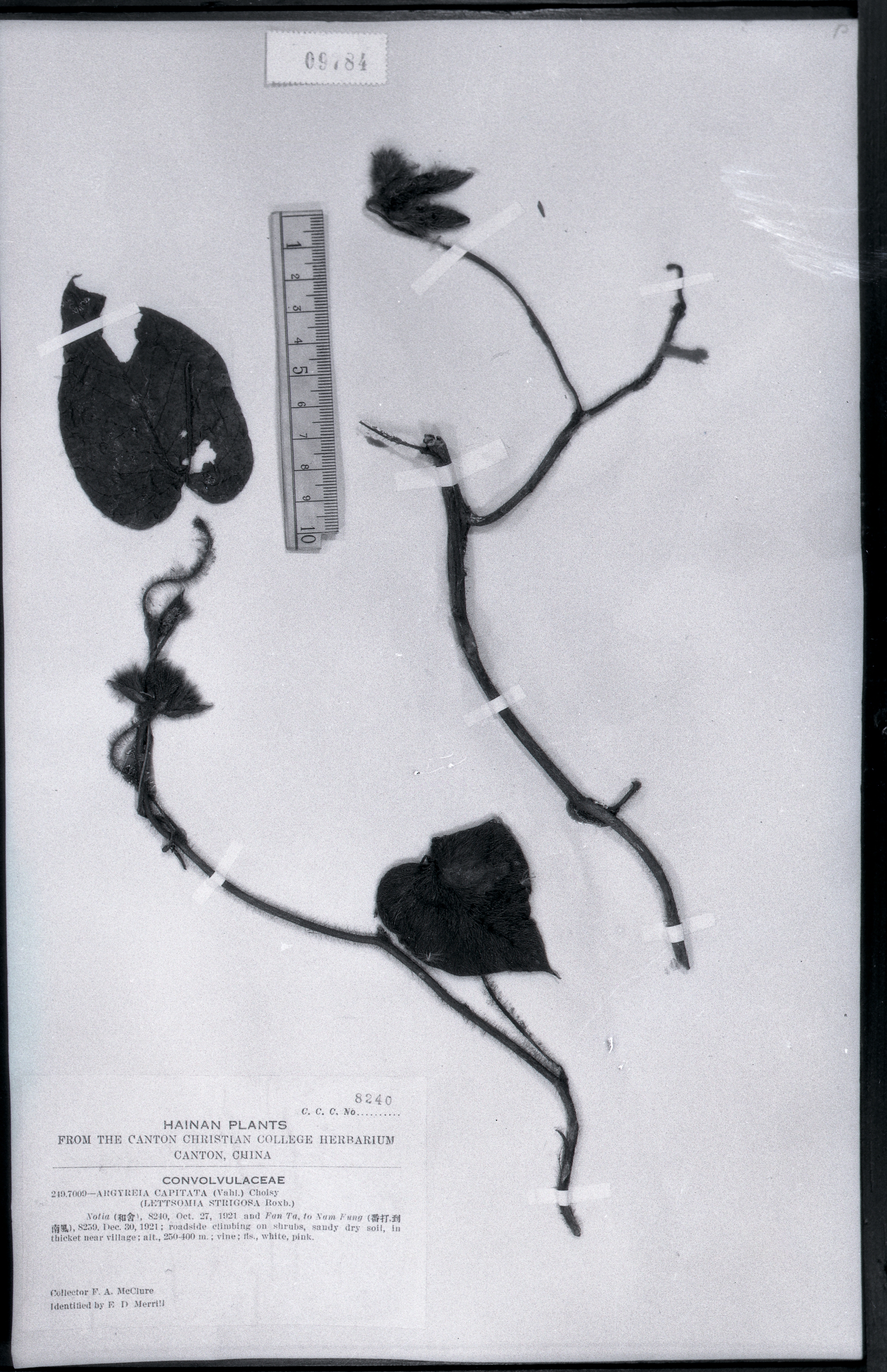 秦仁昌拍摄模式植物标本照片信息 (旋花科,银背藤属)